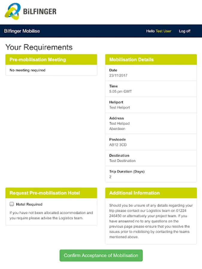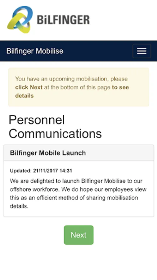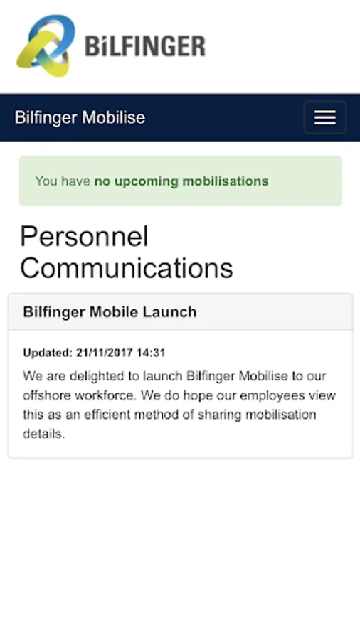 This Bilfinger Mobilise app provides Bilfinger Salamis offshore workforce access to their mobilisation details and communications.