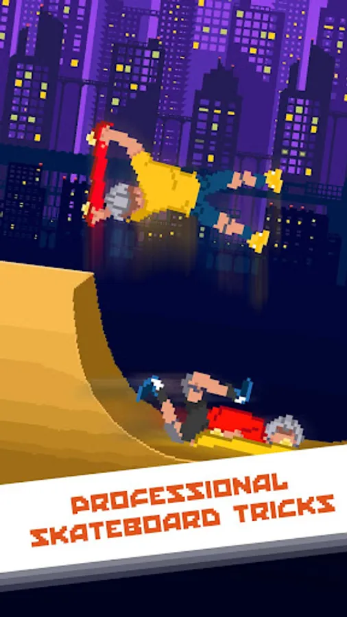 Do 360 Spin, Reverse 360 Spin, Airwalk and more stunts and win coins. Buy new skaters and halfpipes from the market.