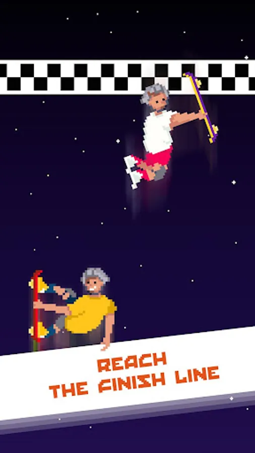 There's no limits on what you can do with one finger. Adjust your jump speed and do the most professional skate stunts mid-air, reach the finish line and win!