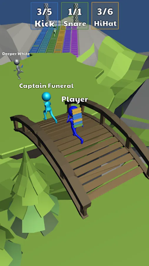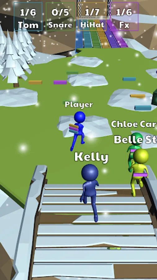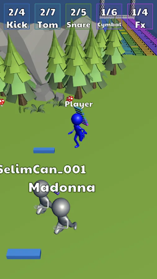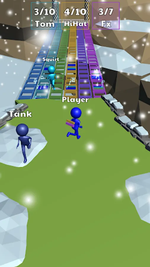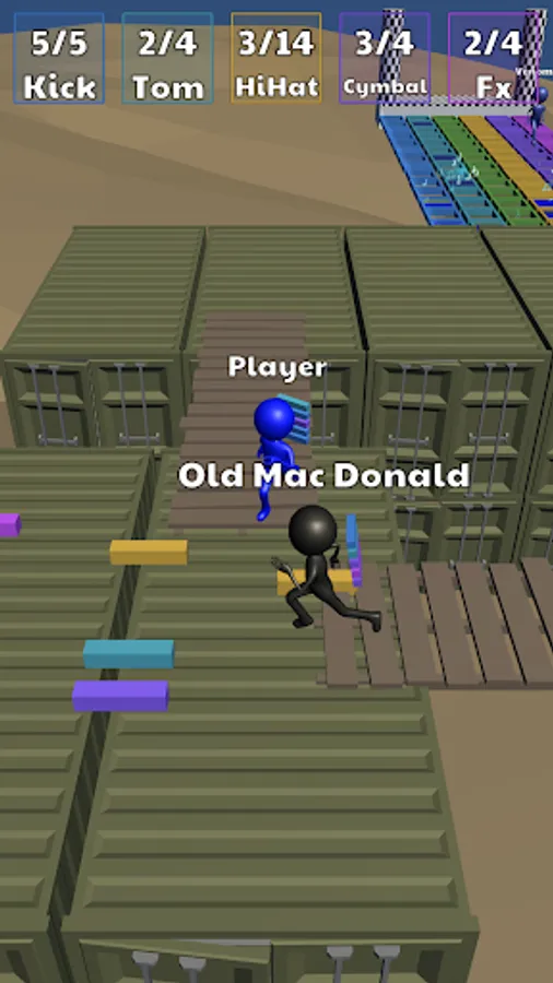 Each color on the soundblocks or beat boxes that represents a component that you can find on a typical drum set. There are drum kick, drum snare, drum tom, drumsticks, etc. Your task is to collect the sounds and place them on the soundblock. You are facing off other three virtual players. You can defeat your rivals and destroy their soundblocks if your have more soundblocks than your rival. However, the reverse is also true. Those rivals can defeat you if they carry more soundblocks than you.