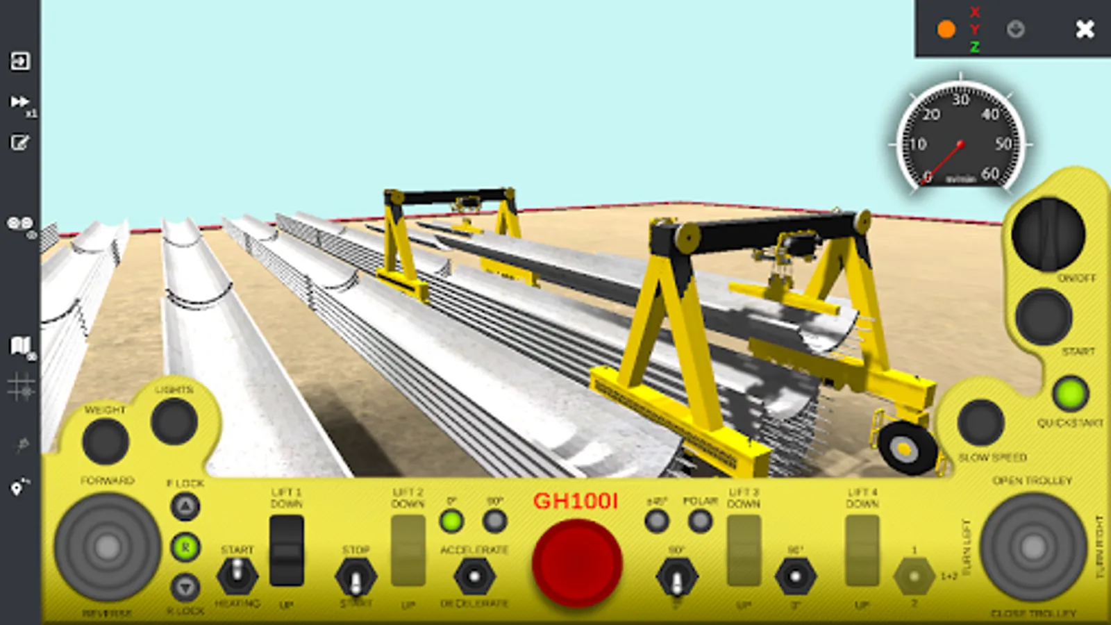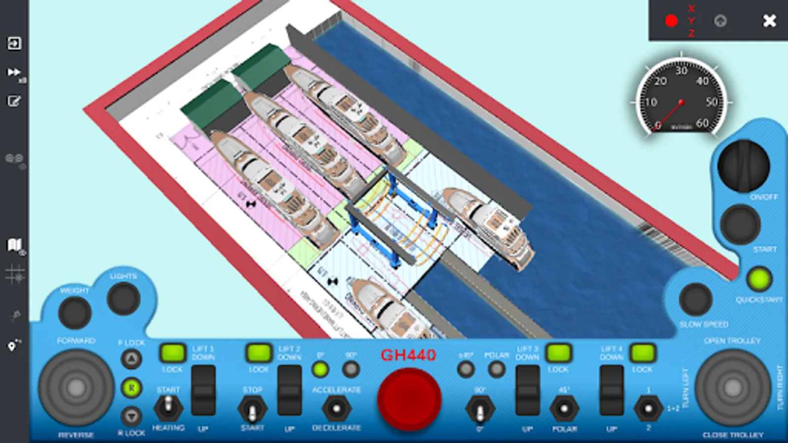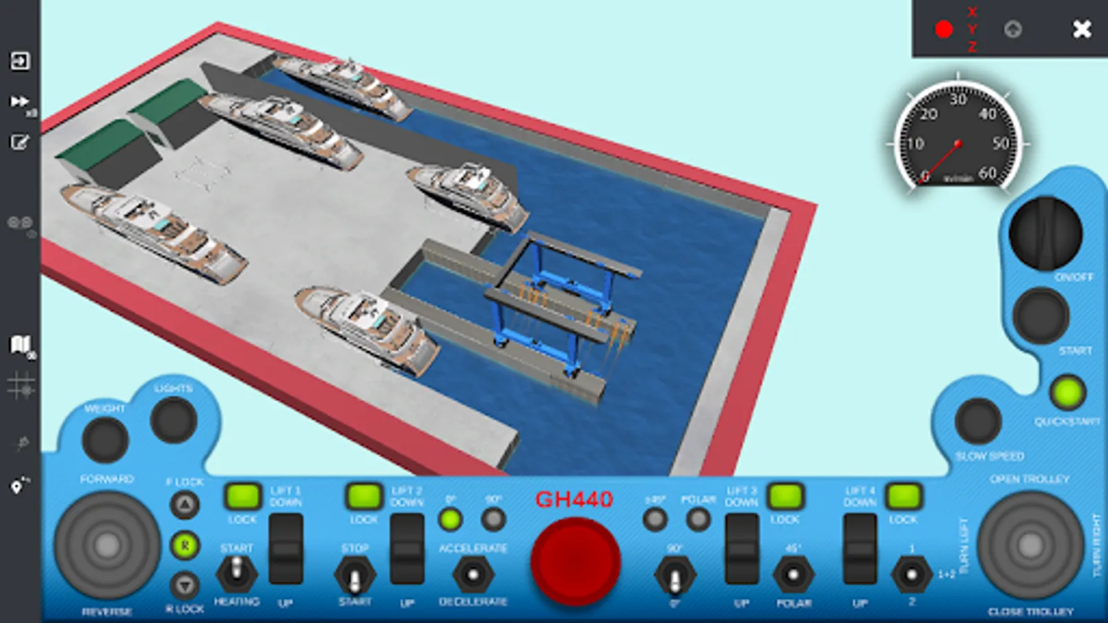 MYGHMOTION offers you a viewer where you can visualize a virtual representation of the configuration of your dry dock or industrial field that we will have previously modeled for you. In addition, they can simulate the operation of the different cranes and elements that are part of the configuration: - industrial marine and gantry cranes and marine crane cranes -, directly controlling the cranes by means of a virtual copy of their radio control.