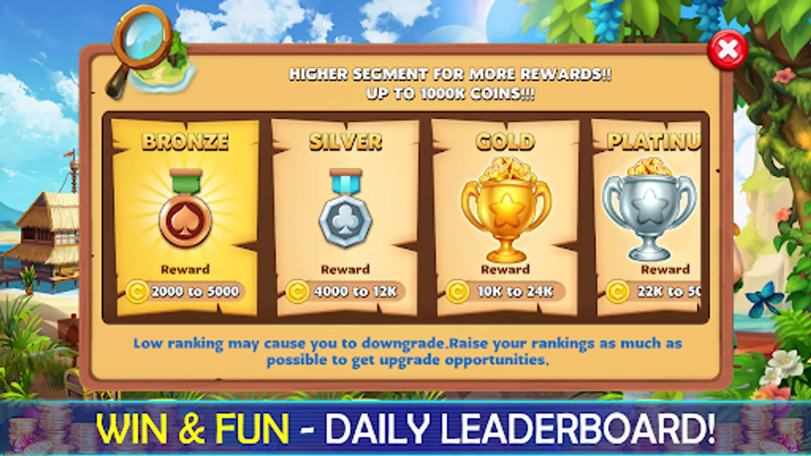 ◉ Simple and addictive gameplay and collect and complete 12 level map island for big rewards.