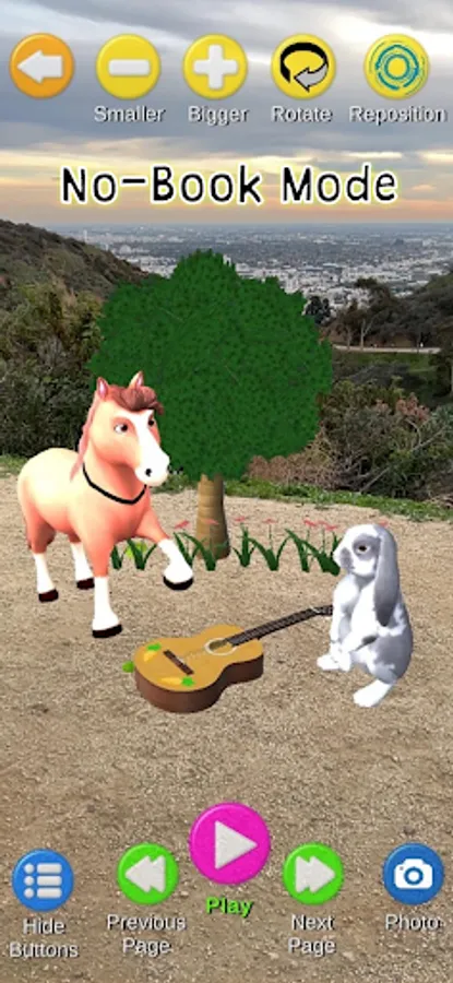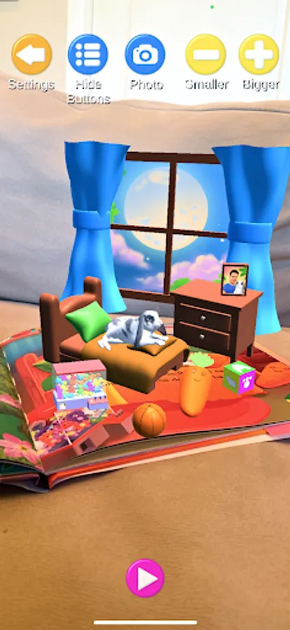 -Two modes: Characters appear on book pages or for those who don't have the book, the characters can show up anywhere they want- on the bed, the carpet, or even outside at the park