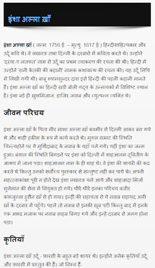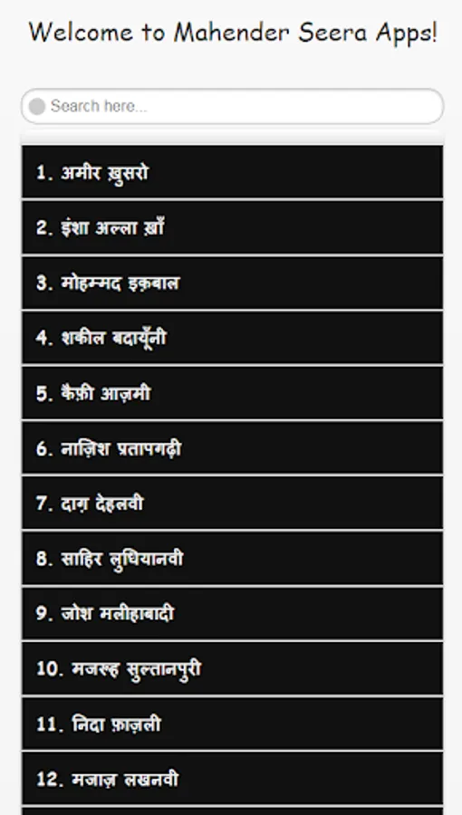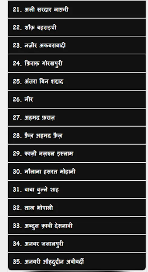 इस एप्प में उर्दू कवि-लेखक-शायरों की जानकारी हिंदी में प्राप्त कर सकते हे।