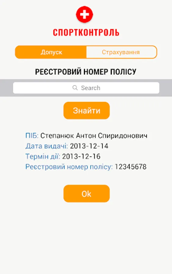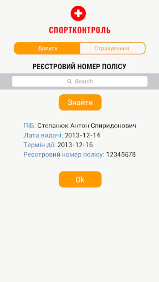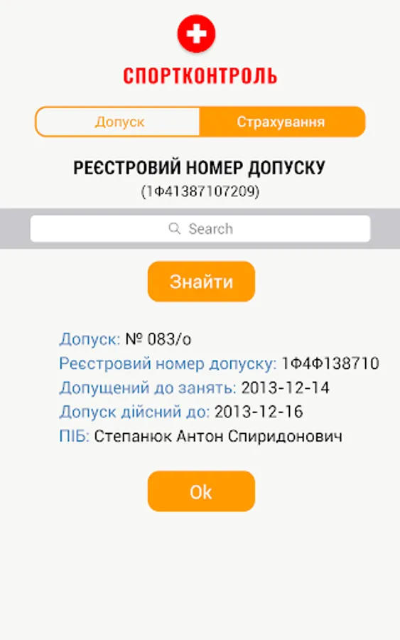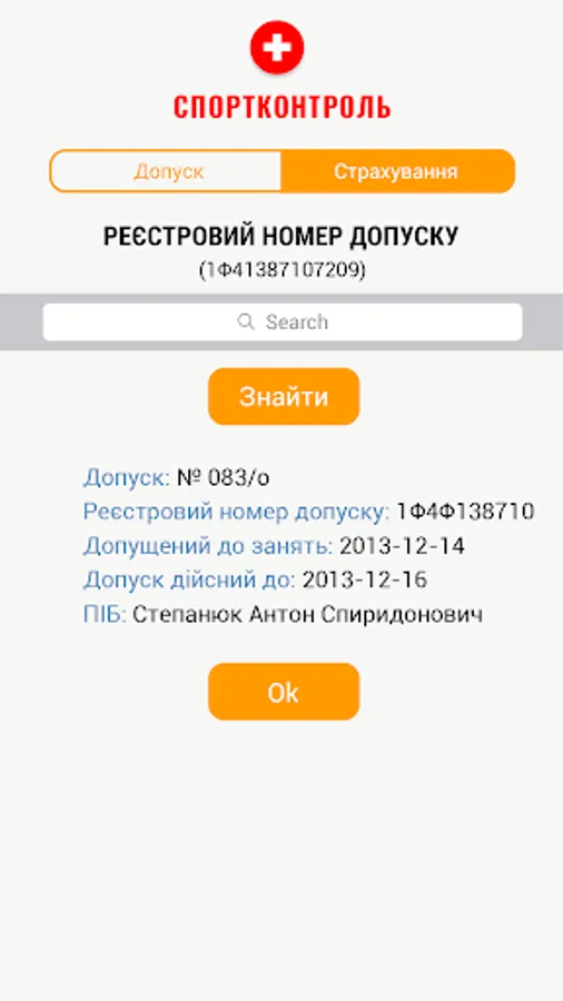 Sportkontrol annexed electronic register of Physical Culture and Sports Ministry of Youth and Sports of Ukraine. Designed to verify the legitimacy of medical admissions for training persons physical culture and sports, as well as the legitimacy of insurance policies. The application used in the sports doctors, organizers of fitness and sporting events, coaches, teachers and other entities sphere of physical culture and sports.