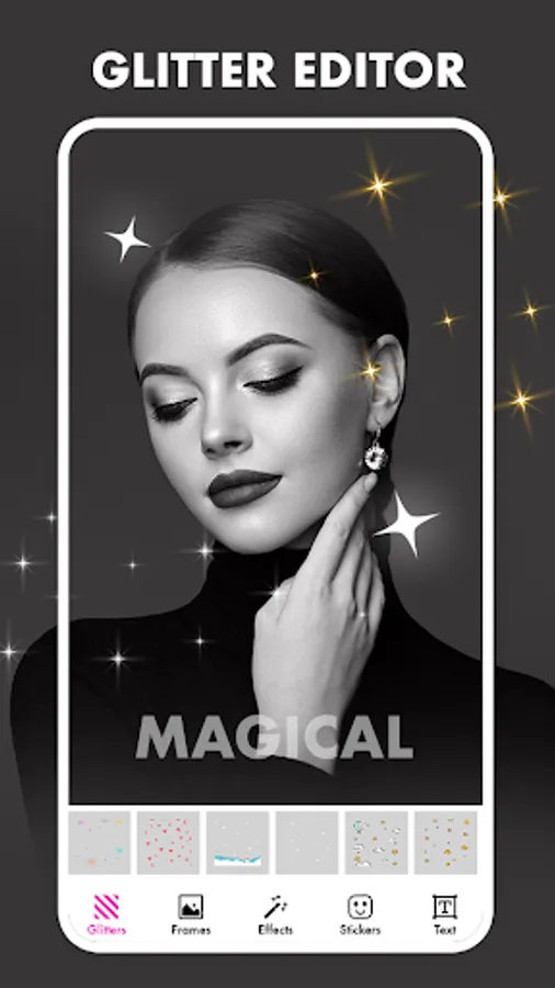Give the best look to your pictures with this app. It’s totally new idea that will make your good looking pictures more attractive and elegant. You can create sparkling pictures with amazing glitter effects.
