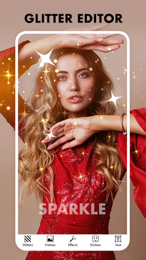 3D Glitter & Sparkle Effects can instantly beautify your photos with mind blowing Glitter Effects. With 3D Glitter & Sparkle Effects app you can make photos more beautiful and romantic by decorating them with fantastic Glitter Overlays, add text and amazing stickers.