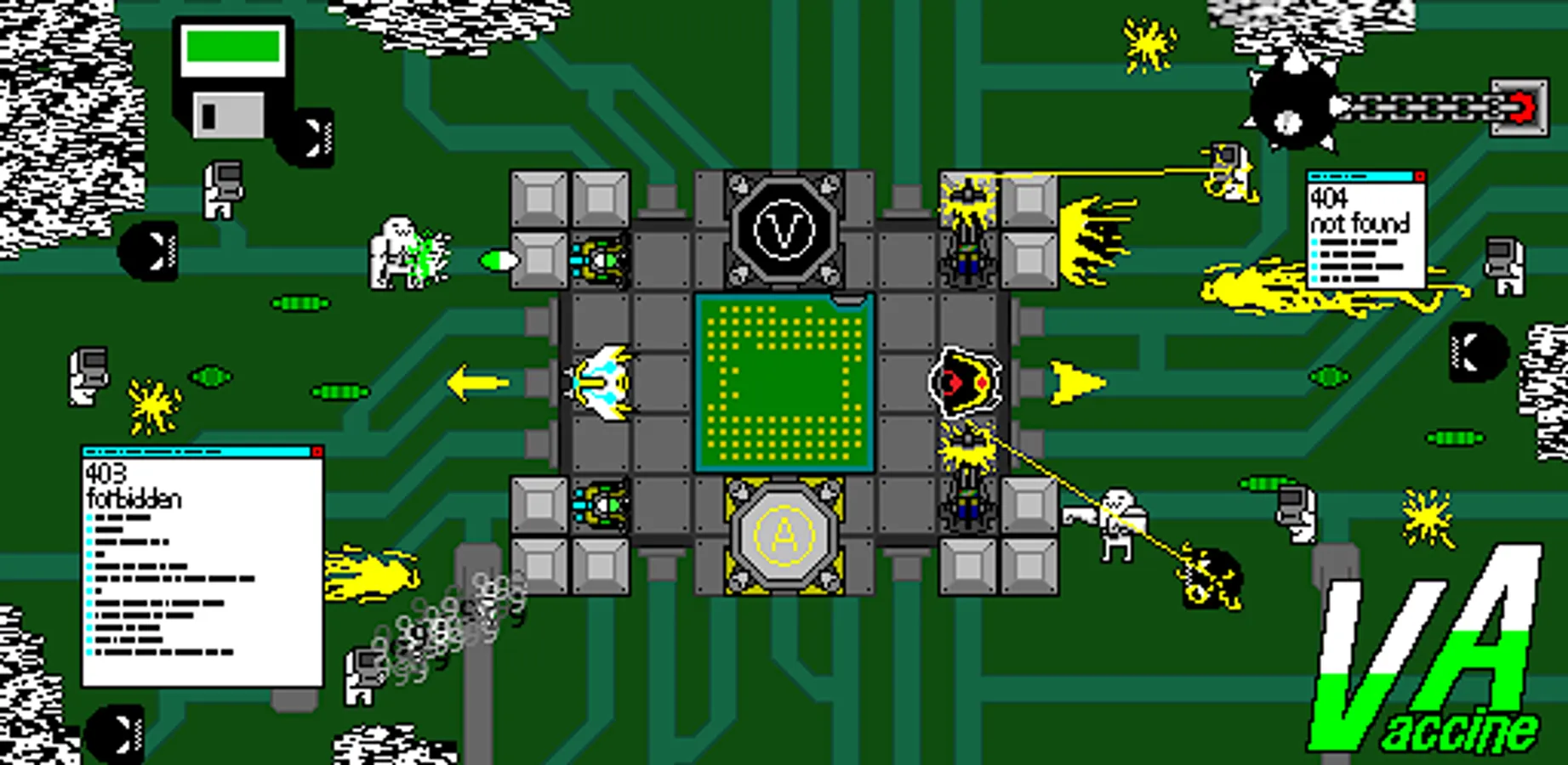 Firewall spamming? Boss battle without vaccine tool? Or... make your own mini-game?