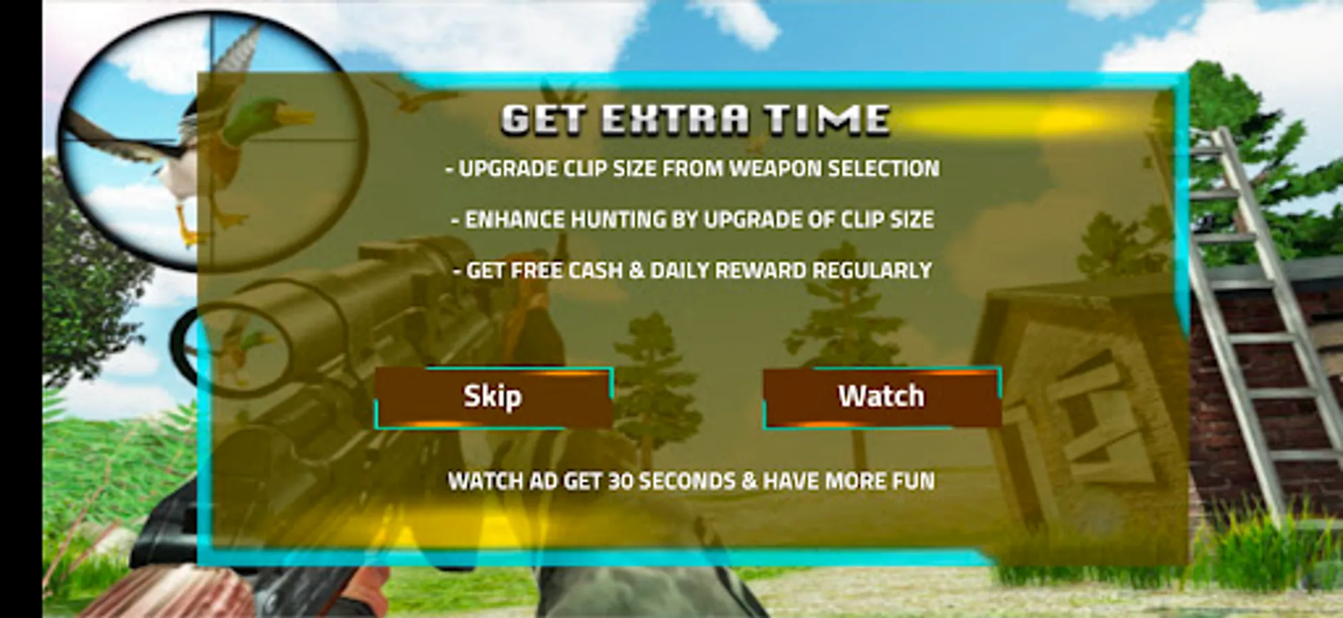 In this birds jungle hunting and sniping and shooting game, you are provided with the best modern guns to become a master of birds flying shooting. Flying birds sniping and shooting is not an easy tasks to perform, but you have to be determined and skilled enough to snipe, hunt and shoot the flying birds with perfection in a mean time.