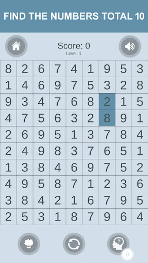 The essence of the logic game number puzzles - clear the board from all numbers. Choose two identical numbers, or give a total of 10, and they are destroyed. The player then proceeds to the next level. The game has hints.