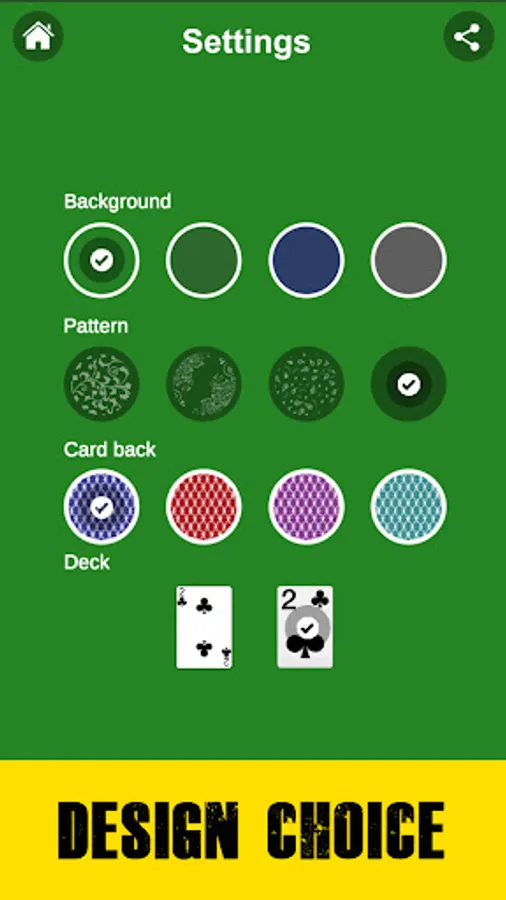 ♠ There is a function to change the background color, pattern, card back;