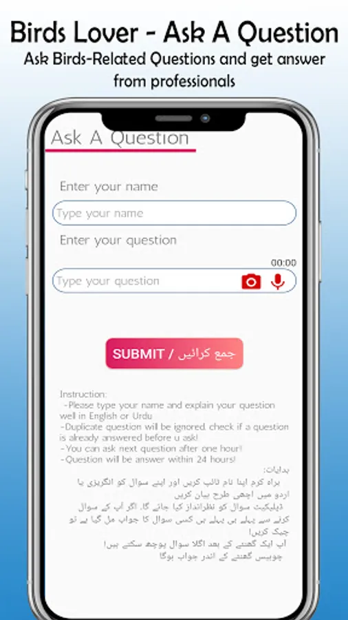 Birds Lover app lets you ask questions about bird's problems and get solutions from professionals.