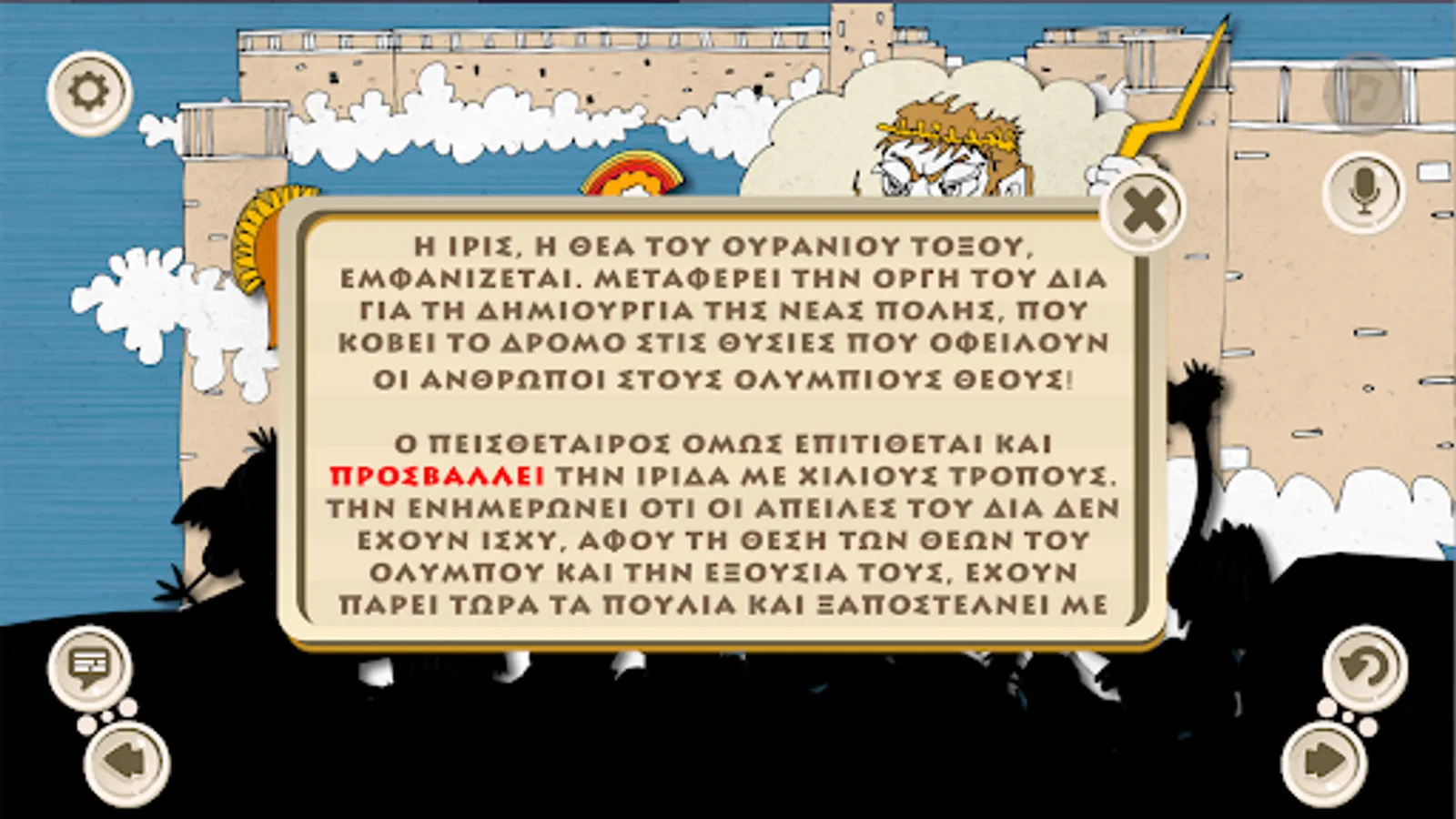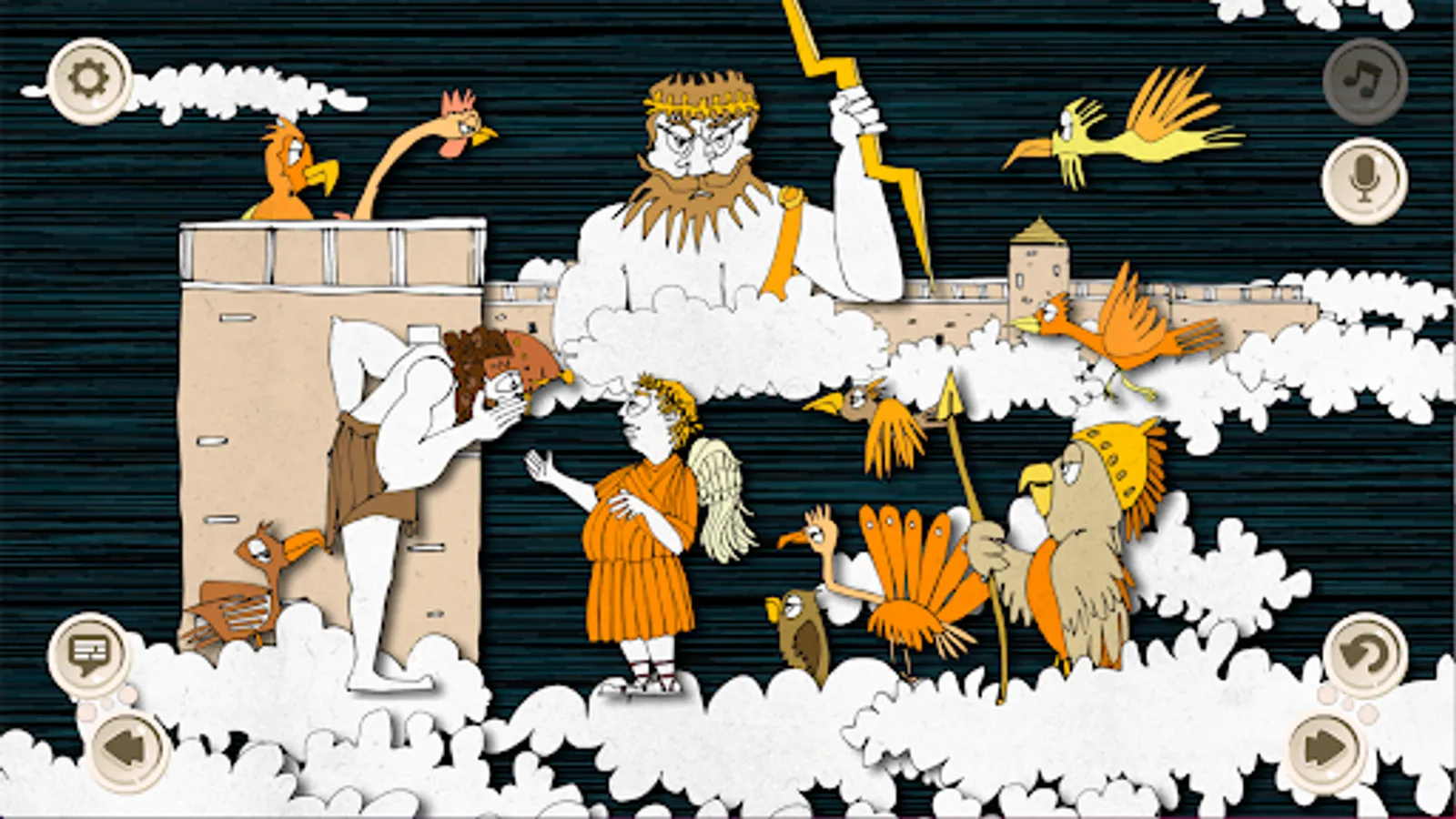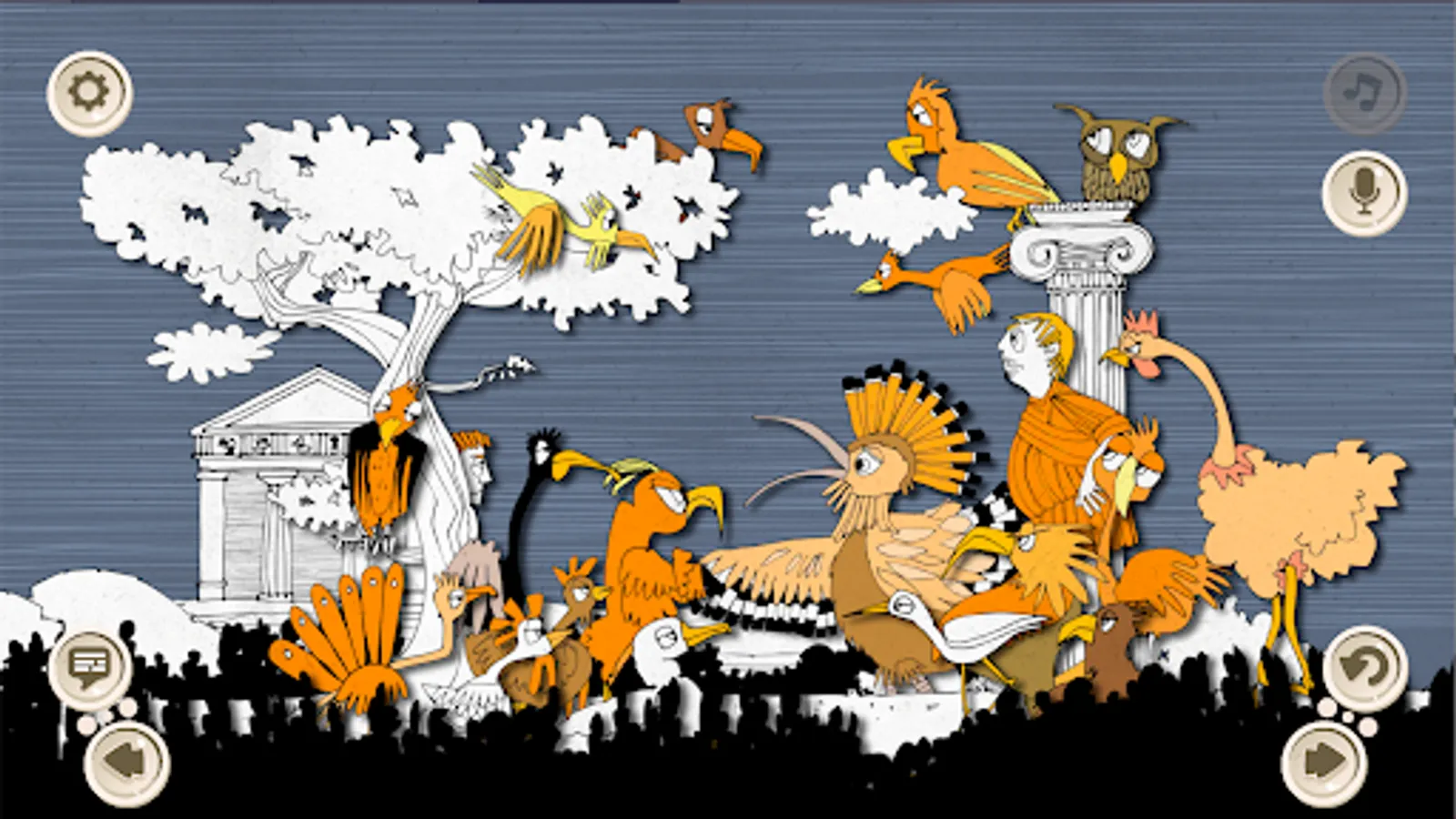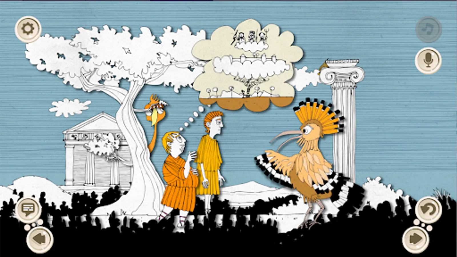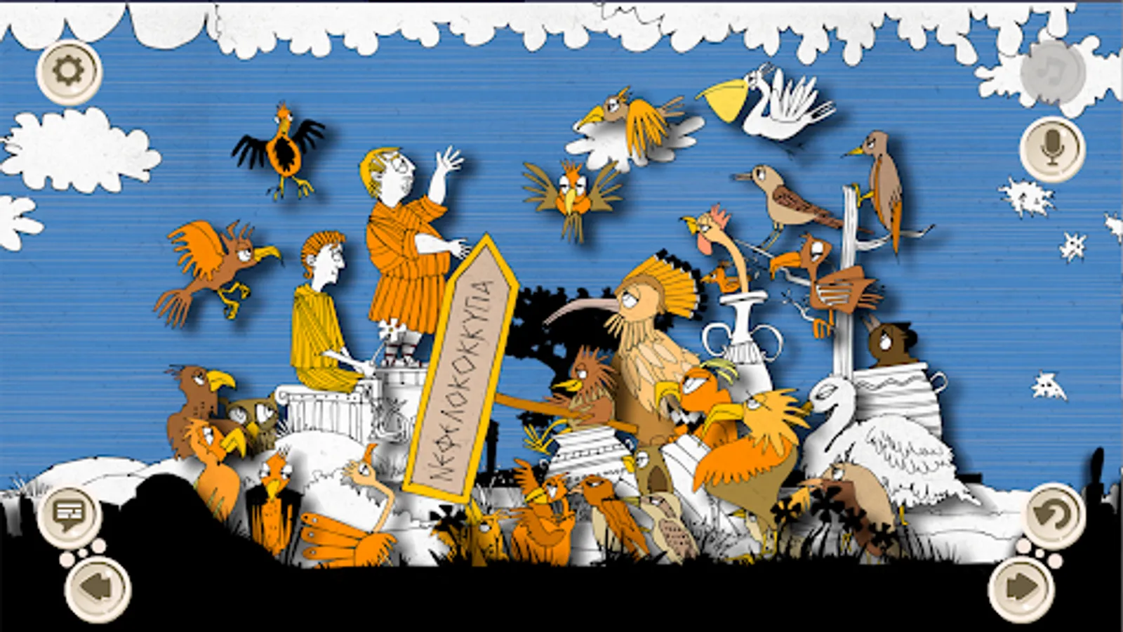Aristophanes Birds is the first educational app of Birigogo.gr from the series of ancient Greek myths and dramas created by the platform under the auspices of the Greek Art Theater and the support of the Greek Ministry of Culture.