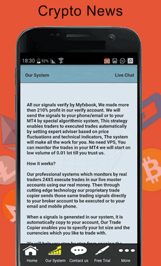 We are a team of professional Crypto traders, having individual expertise in fundamental and technical analysis in various Crypto Alternative Coins. In our bitcoin trading app you may find signal and news.