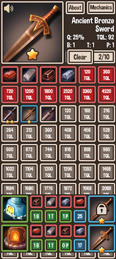 In Puzzled Swordsmith you will combine Ingots to craft Swords of varying qualities depending on Ingot choice, position, and temperature. Achieve max stats on your Swords to unlock more Swords, more Ingots, and more Recipe Slots. Compare your Recipes with your friends when you get stuck!