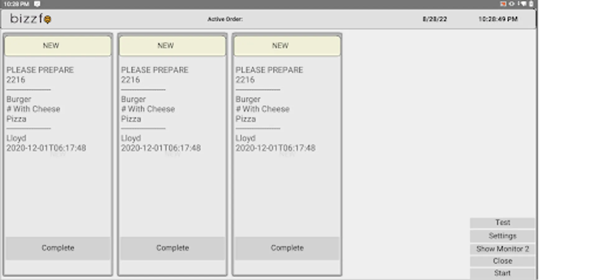 Used with a Bizzfo Point Of Sale to Display customer orders