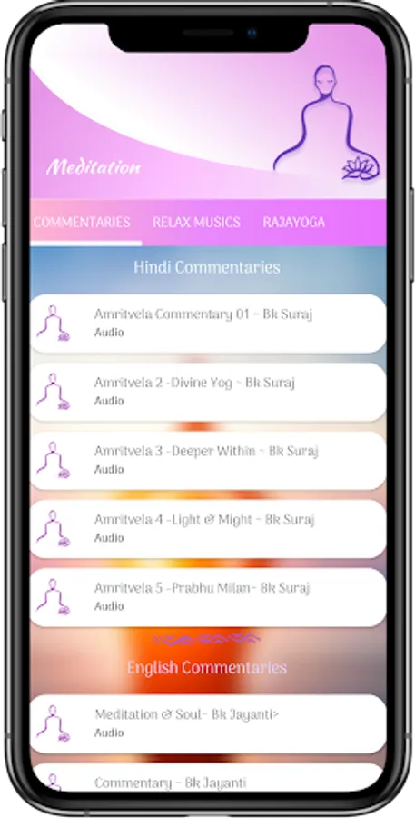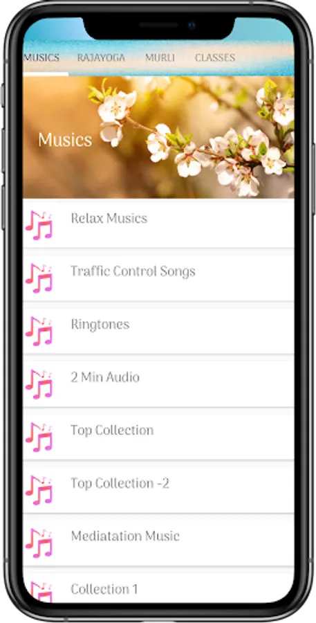 2. Resources - This section includes everything rest - RajYoga meditation music, relaxing nature sounds, BK songs, Classes, Sakar and Avyakt Murli audios.