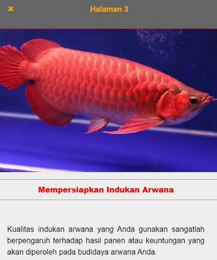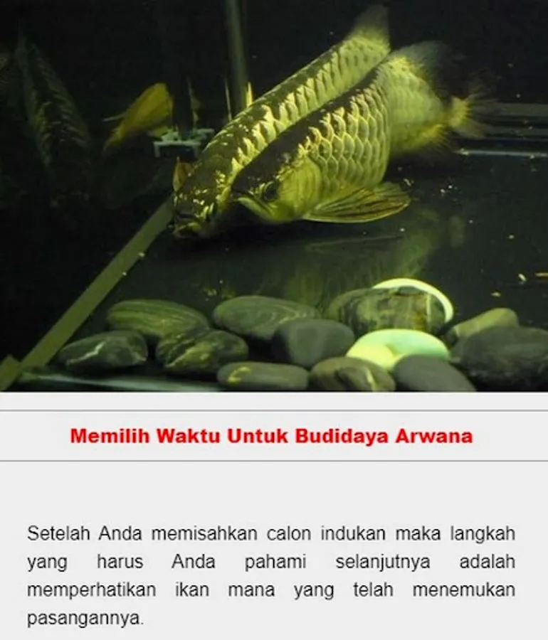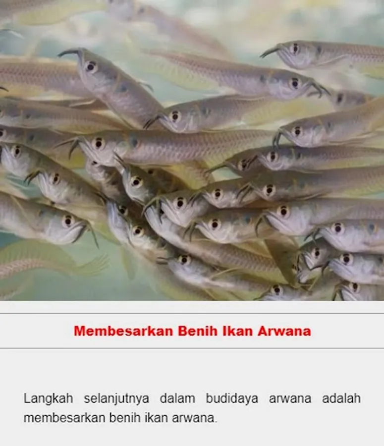 Arowana is one of the ornamental fish that is much loved by ornamental fish lovers, this ornamental fish has several types that are very unique, such as Arowana Black Golden, Arowana Super Red, Arowana Green, Arowana Platinum, Arowana Batik (Myanmar Arowana), Brazilian Arowana (Silver Arowana), Arowana Cross Back Golden, Arowana Red Tail Golden, and many others. This application can be used as reference material for those of you who want to cultivate this Arowana fish species, there are several ways to cultivate this Arowana fish, hopefully it will be useful.