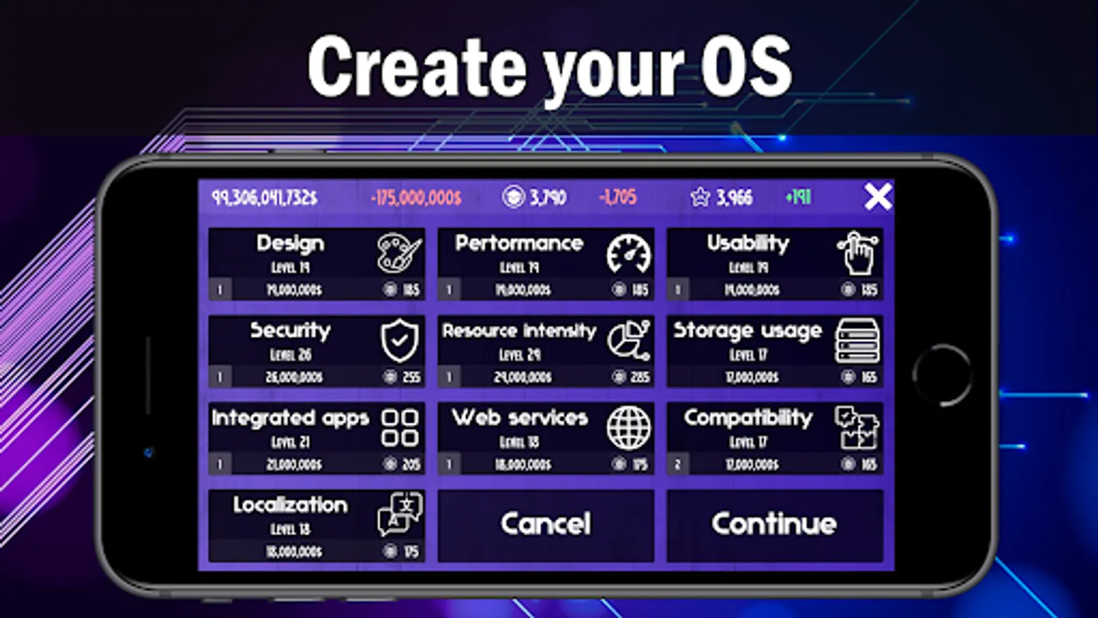 Competing companies will produce their products and grow throughout the game! From year to year, the competition will become higher, and the products will become more technologically advanced. The main thing is to keep up with the times! Don't forget to follow the news to know what's relevant right now!