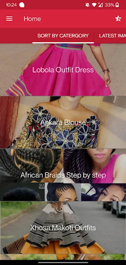 i classified in this app six categories : lobola outfit dresses , ankara blouses , african braids step by step , xhosa makoti outfits , swazi fashion and ankara outfits