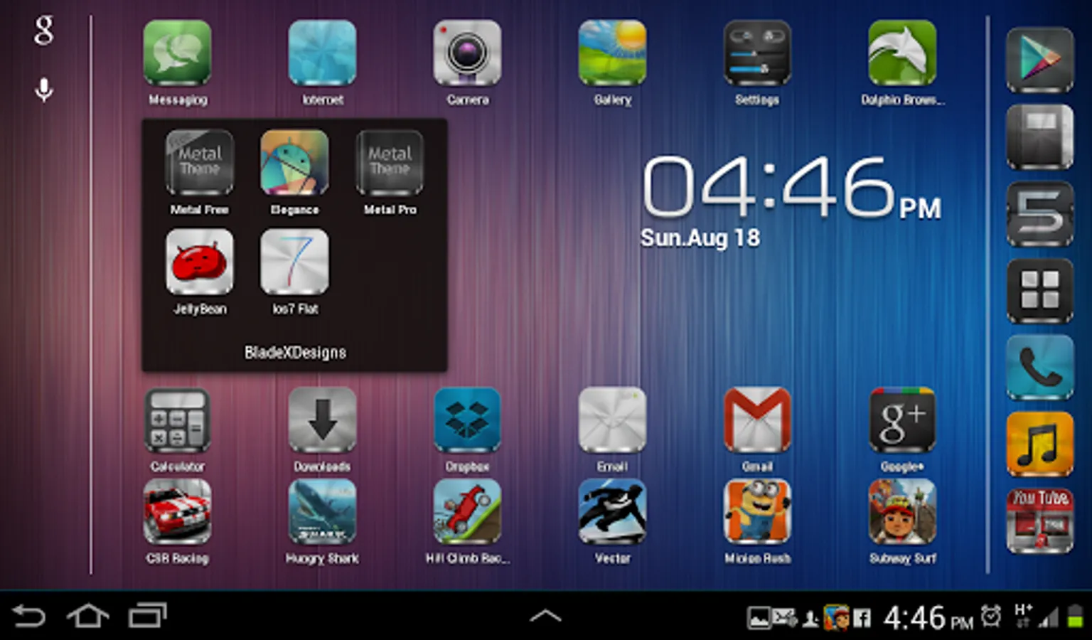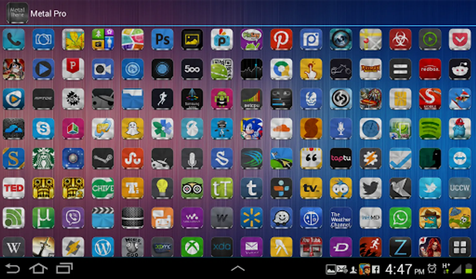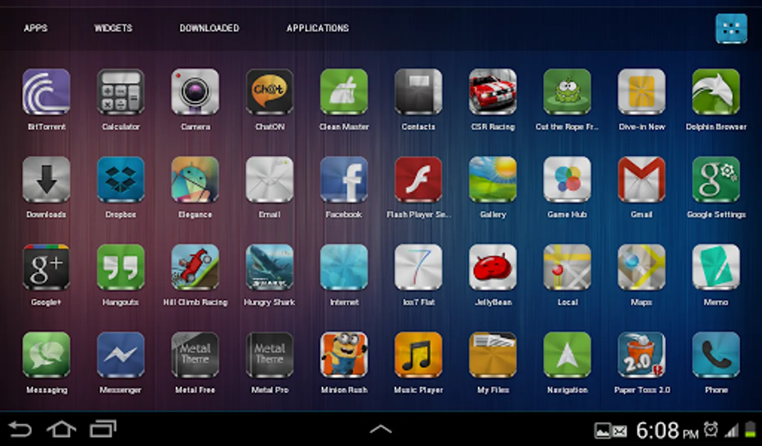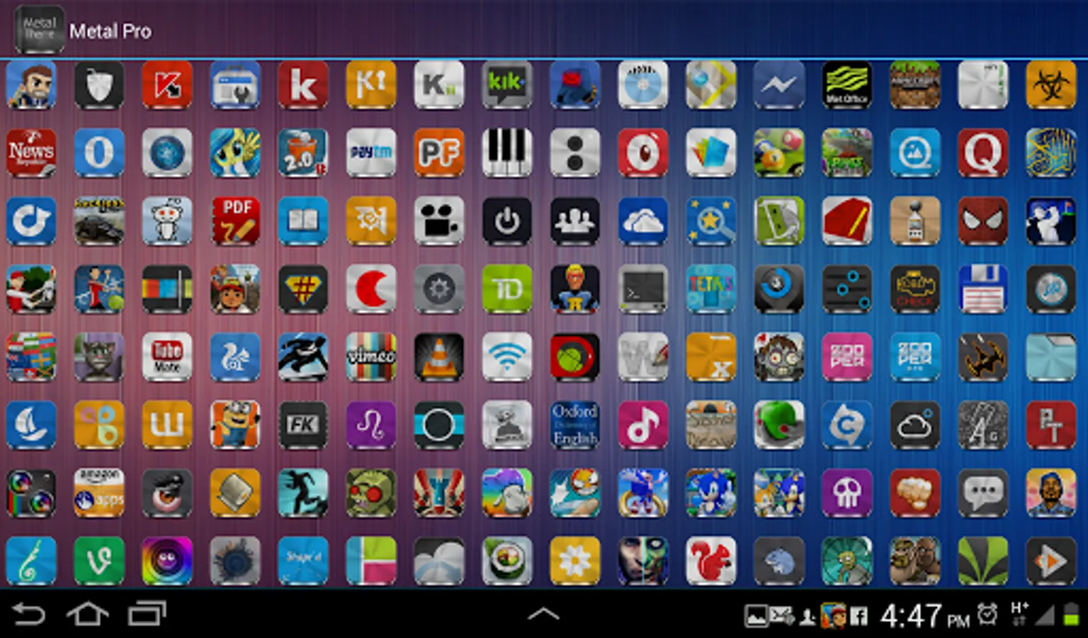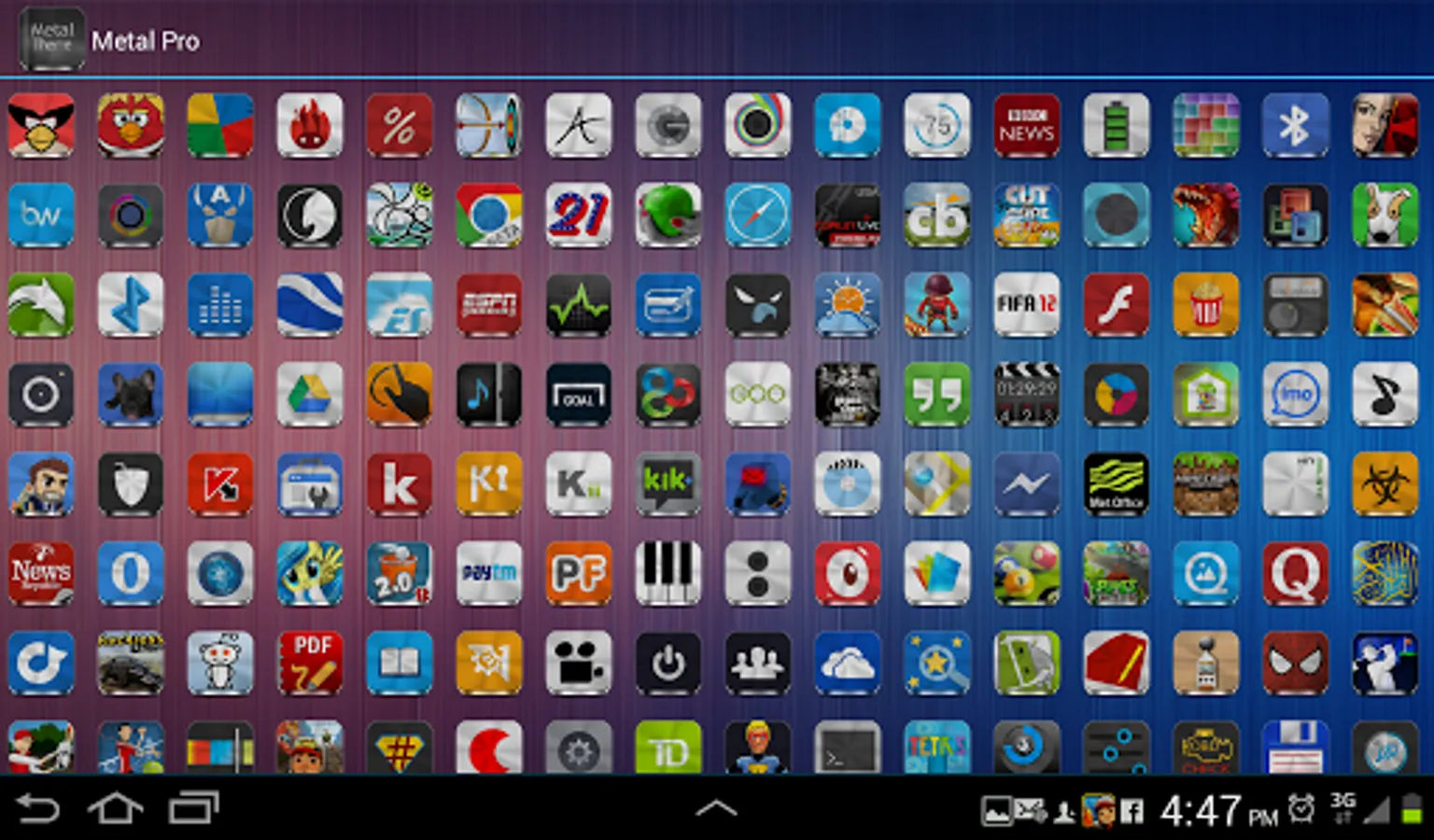 Unlike Rest of Metal themes this theme offers a Perfect match of vivid & pleasant colors and high quality wallpaper that will totally transform your device giving it a pleasing and Colourful look without loosing the metallic texture.