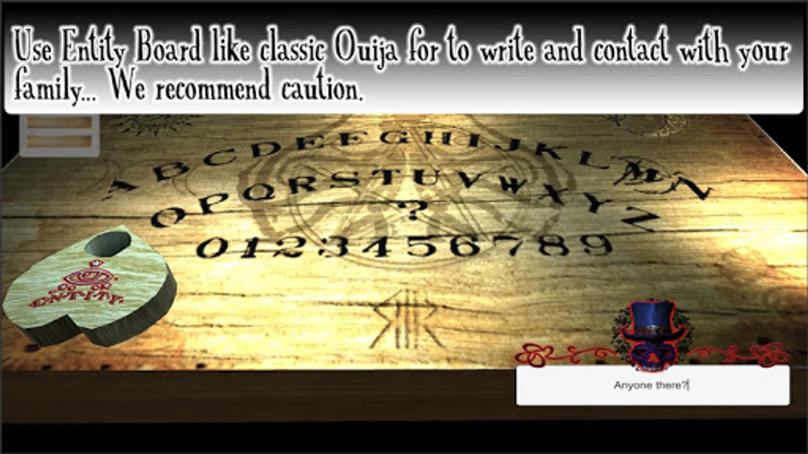 Entity is a Ouija Board for contact with different entities, unkown deceased or family. Be careful with what not knows, the Ouija could be dangerous.