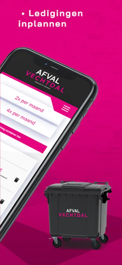 With the handy Waste Vechtdal app you have 24/7 insight into your invoices, you can schedule extra emptying, you can receive notifications and, if necessary, you can have the format of your waste container adjusted.