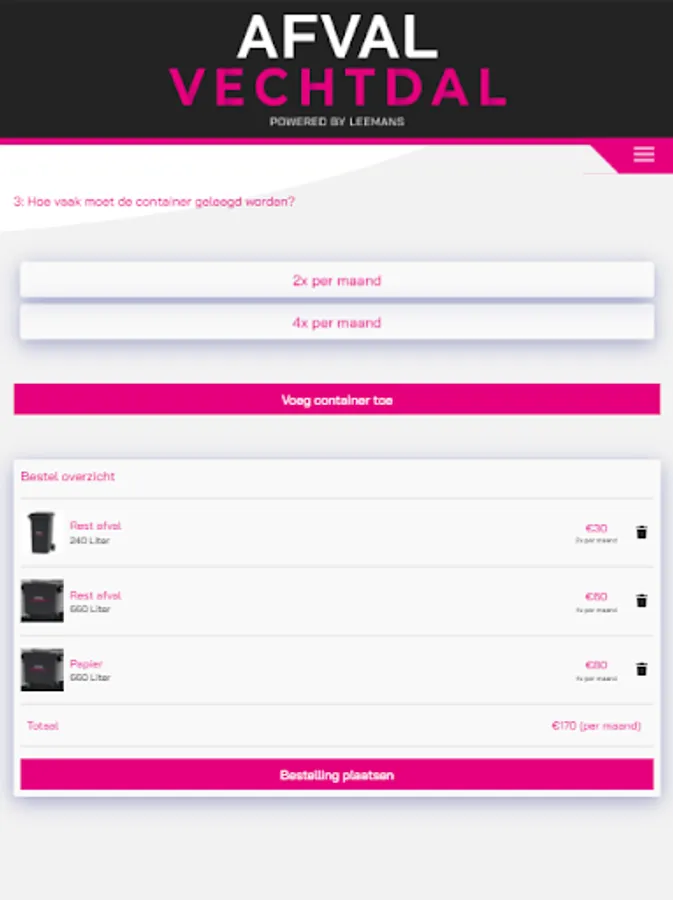 With this app you can easily and quickly order your container and arrange all your waste matters.