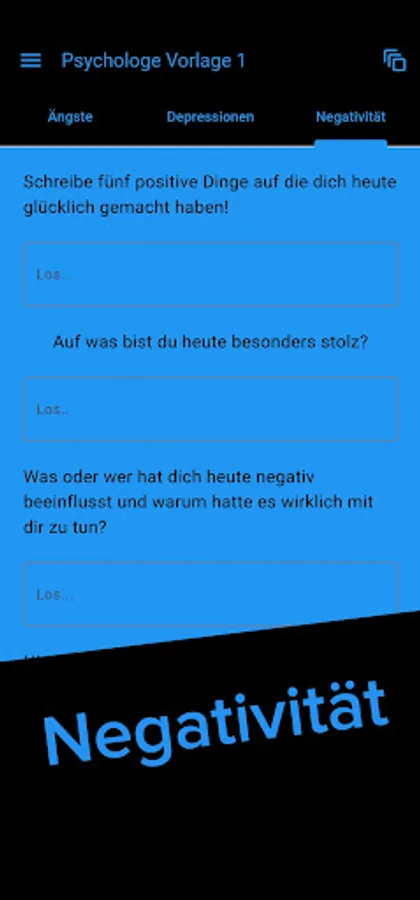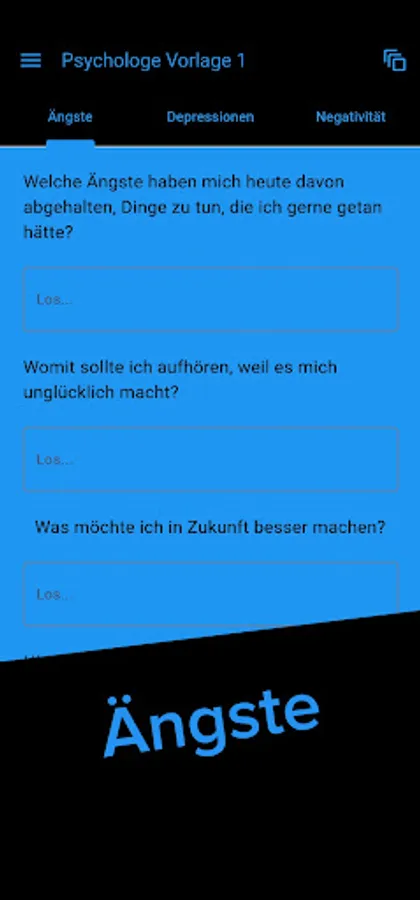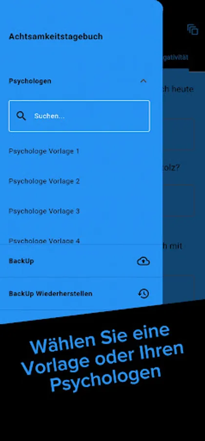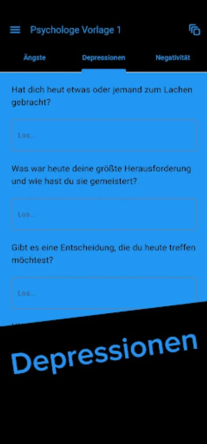 Sollte Ihr Psychologe bei uns registriert sein, haben Sie die Möglichkeit in der App die von Ihm erstellte Seite aufzurufen und anzuwenden. Dies ermöglicht es Ihnen, Ihrem Therapeuten Ihr Innenleben zu verdeutlichen und Ihm Ihre geschriebenen Einträge ganz einfach zukommen zu lassen um in der nächsten Sitzung mit Ihm darüber zu sprechen.