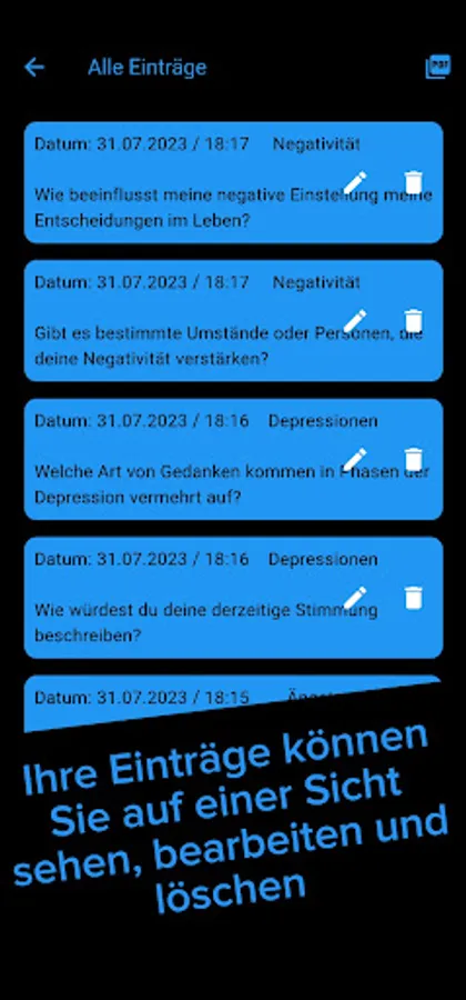 Diese App dient zur therapeutischen Unterstützung und/oder um ohne psychologische Behandlung psychischen Leidensdruck langfristig zu reduzieren. In schweren Zeiten des Lebens, vergisst man schnell Mal die Achtsamkeit gegenüber seinem Inneren. Durch dieses Tagebuch können Sie daran arbeiten, achtsamer und aufmerksamer gegenüber Ihrer Innenwelt zu werden. Des Weiteren lernen Sie die kleinen Erfolge und Erlebnisse im Leben wieder mit Dankbarkeit und Freude zu genießen.