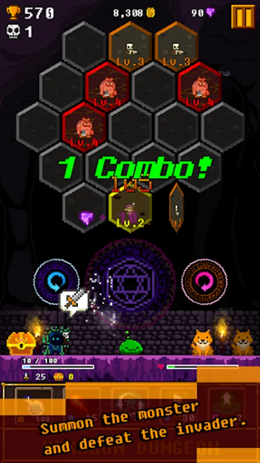 - If you connect more than 3 hexagon monster blocks, the blocks are combined and level up