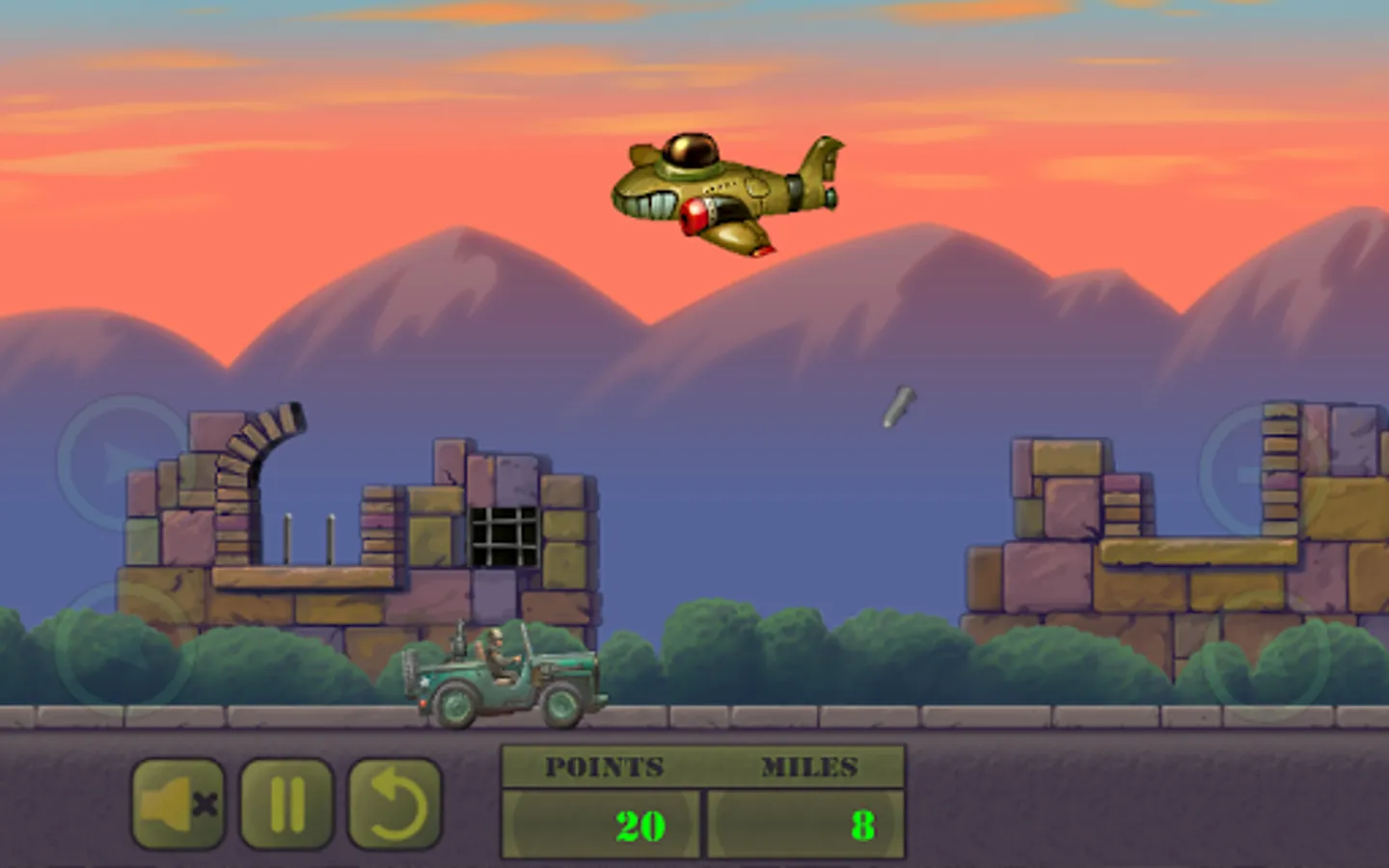 Jeep Patrol is an endless runner in the army toon style. Drive as far as you can and shoot everything that comes from the sky towards and make points. Moreover jump over large stones or wood destroying obstacles.