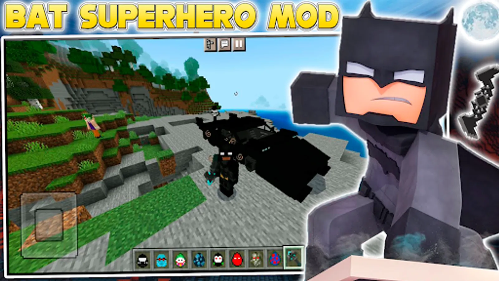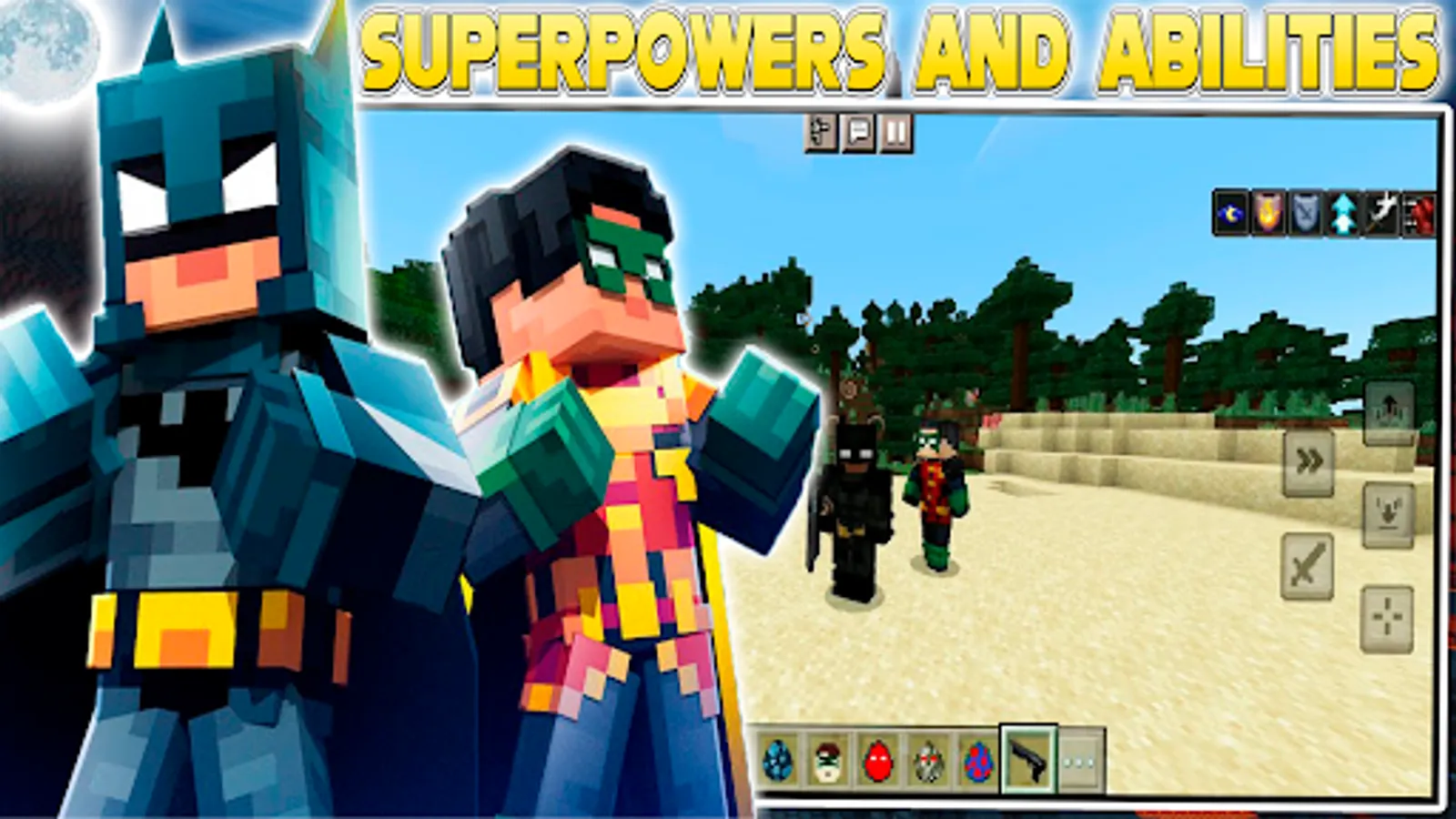 The best Batman mod for Minecraft will give the player impressive powers and abilities, as well as a collection of unique craftable weapons and armor that will make you stand out as the ultimate defender of justice. Here are some of the incredible superpowers and weapons at your disposal: summon the iconic Batmobile or the Batmotocycle, an elegant and powerful vehicle that will allow you to travel through the pixel universe at incredible speed. Unleash your arsenal of gadgets to chase criminals or engage in high-speed chases. Choose your favorite MCPE skin in our application and start playing popular superhero games on Android. Use Batman's superhuman strength in the popular superhero mod to defeat your enemies with ease. Break through obstacles, destroy buildings and inflict crushing blows on your opponents. Feel the agility of the Dark Knight as you effortlessly move through the terrain with exceptional parkour skills in MCPE blocks and free running. Jump on rooftops, swing on hooks and perform stunts. Arm yourself with Batman's signature throwing weapons, the Batarangs. Hone your accuracy to quickly disarm enemies, disable traps, or accurately hit distant targets. Fire your grappling hook to quickly fly through the air, scale tall buildings, and explore every corner of Gotham City. Get access to Batman's versatile belt filled with tons of gadgets and tools to help you fight crime. From hooks to explosive gel, you'll always be ready for any situation. Travel to the infamous Arkham Asylum, a sprawling complex filled with powerful supervillains and treacherous challenges. To fight the Joker, Harley Quinn, Red Hood and Bane, you will also need different types of weapons: bombs, a grappling gun, Superman kryptonite, a batclaw, a freezing gun. Test your skills, take on Gotham's most notorious criminals, and bring order to the facility. With these superpowers and unique weapons at your disposal, the Dark Knight Adon allows you to fully immerse yourself in the exciting world of Batman, bringing justice to Gotham City one block at a time. Assume your role as a caped crusader with the Batmobile mod. Call on the help of your true friends, Batgirl and Catwoman, Nightwing and Robin. Although Batman does not have innate superpowers, he can still fight on par with other superheroes of the Marvel and DC universes: Spiderman mod, Captain America mod, Iron Man mod, Flash mod, Doctor Strange mod, Wonder Woman mod, Superman mod, Black Panther mod, Joker mod. Participate in PVP battles on cube Minecraft PE Maps Roblox. Download the best superhero skins for Android. Sandbox lego superhero games for boys. Dress up your favorite character in a superhero costume in dress up game for girls. Invite your friends to the new Minecraft server, collect your own MCPE Avengers mod team and play online multiplayer mode. New Lego Batman Arkham Knight mod Injustice for Minecraft Pocket Edition. New roblox games for boys and girls. Free Minecraft skins for your phone. Install maps for Minecraft and Justice League mod.