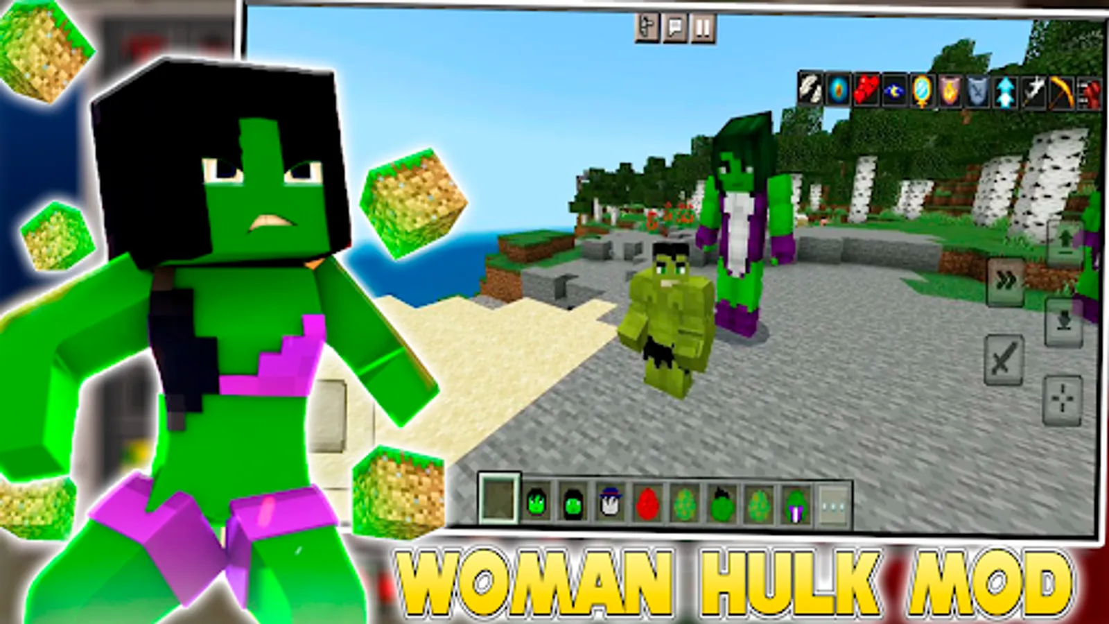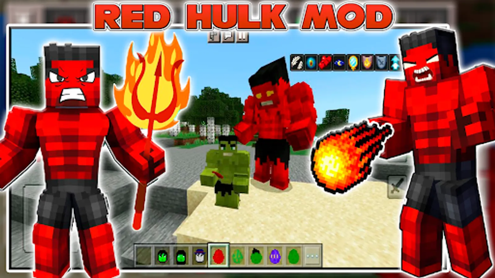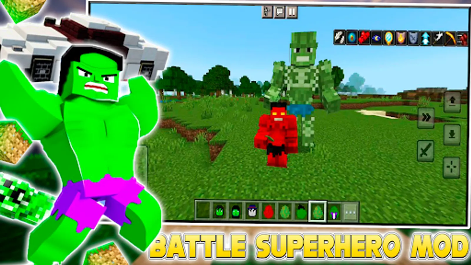 The new Minecraft Hulk mod will add cool abilities to the game with which you can jump over tall buildings in one jump, run faster than any creature and unleash devastating attacks on your enemies. You will also have the opportunity to play as a female Hulk and a red Hulk. The popular Minecraft Superhero Mod will allow you to become the one and only MCPE Hulk, unleash your inner green monster to wreak havoc in the blocky world of Minecraft Pocket Edition. The best Minecraft Avengers mod will allow the Hulk to jump high through cubic biomes, overcoming trees and mountains with incredible ease. With the unique power of the Hulk, you can easily pick up and throw MCPE blocks, destroying enemies and obstacles in your path. Choose your favorite MCPE superhero skins in our application and start playing the new Minecraft mod about superheroes. You'll be faster and stronger than any creature in the Avengers arcade game, and you'll have new abilities and skills to help you along the way. Unlock new upgrades and abilities that will make you even stronger. You can customize your Hulk character to look exactly the way you want, and you can choose from a variety of MCPE skins and costumes inspired by the Marvel universe. But the real fun begins when you encounter other creatures and supervillains. With your new abilities, you can easily fight even the strongest monsters like Minecraft Godzilla Mod and King Kong Mod. You can fight your way through hordes of zombies, hurl creepers across the map, and unleash powerful physical attacks that will leave your enemies in awe. The Incredible Hulk is a very strong superhero, in strength he can be compared with any Marvel superhero and DC, such as: Spiderman mod, Captain America addon, Iron man mod, Wonder Woman flash game, Doctor Strange mini game, Batman mod. Install the best Minecraft skins on your phone for free. Lego superhero game for boys and girls. A new free block game from the creators of crafting for boys. Play with friends in multiplayer mode on the new Minecraft server, take part in the royal battle on Android. Exploring the virtual cartoon world you will discover new areas and challenges that only the Hulk can overcome. With your strength and ability, you can find hidden treasures, explore deep underground caverns, and even fight the Ender Dragon himself!