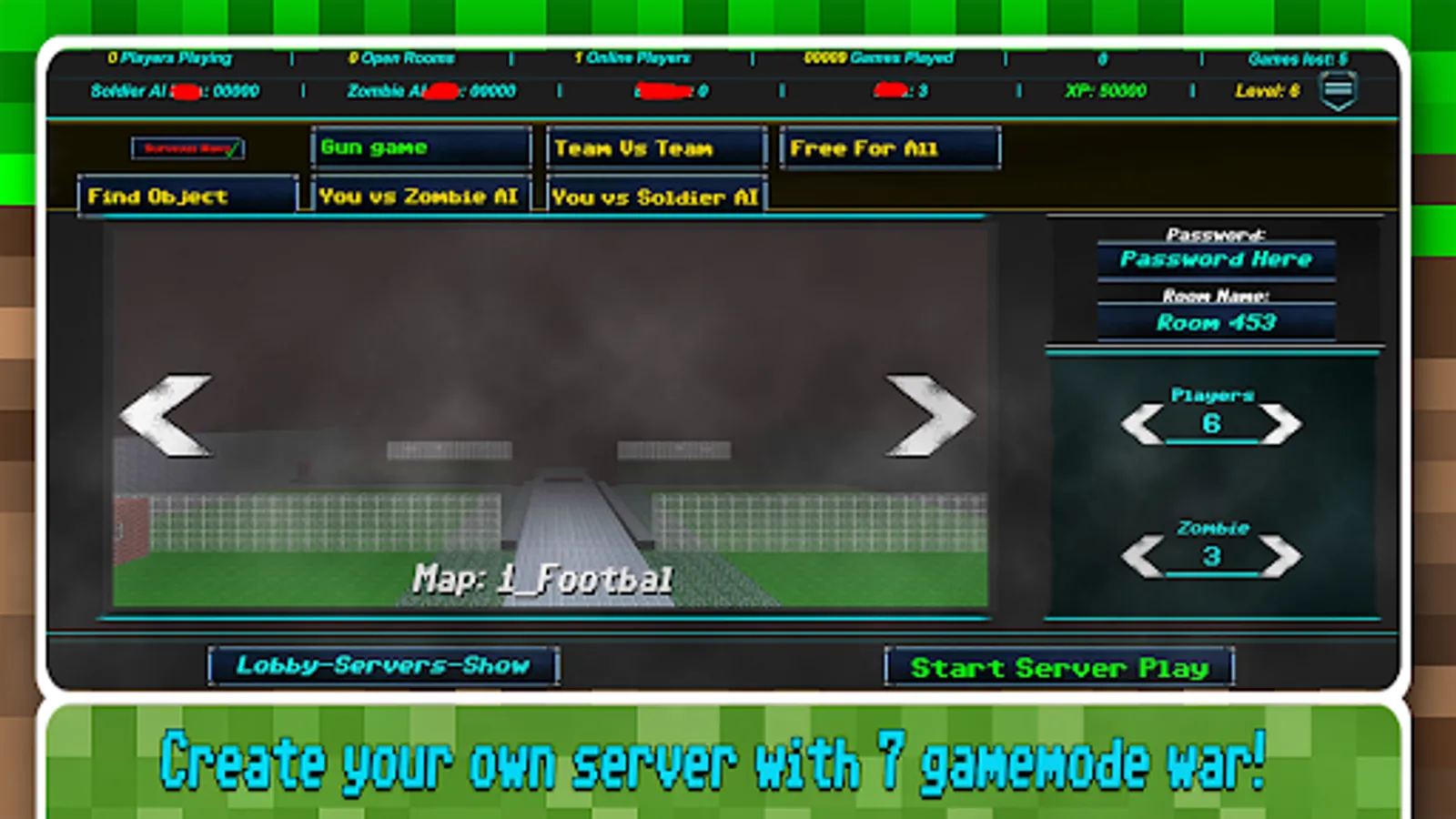 4 MODS: TEAM VS TEAM, PLAYERS VS ALL, SURVIVAL AND TEAM VS BOTS ZOMBIE