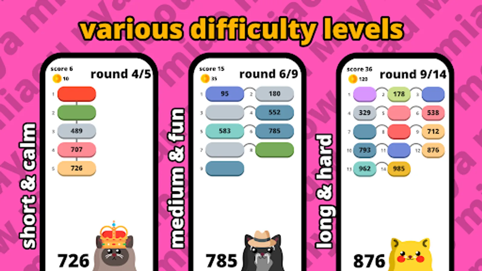 Once you've created your perfect feline companions, it's time to put your numerical skills to the test. Choose your preferred difficulty level, ranging from Easy to Difficult, and begin a series of rounds where random numbers are generated.