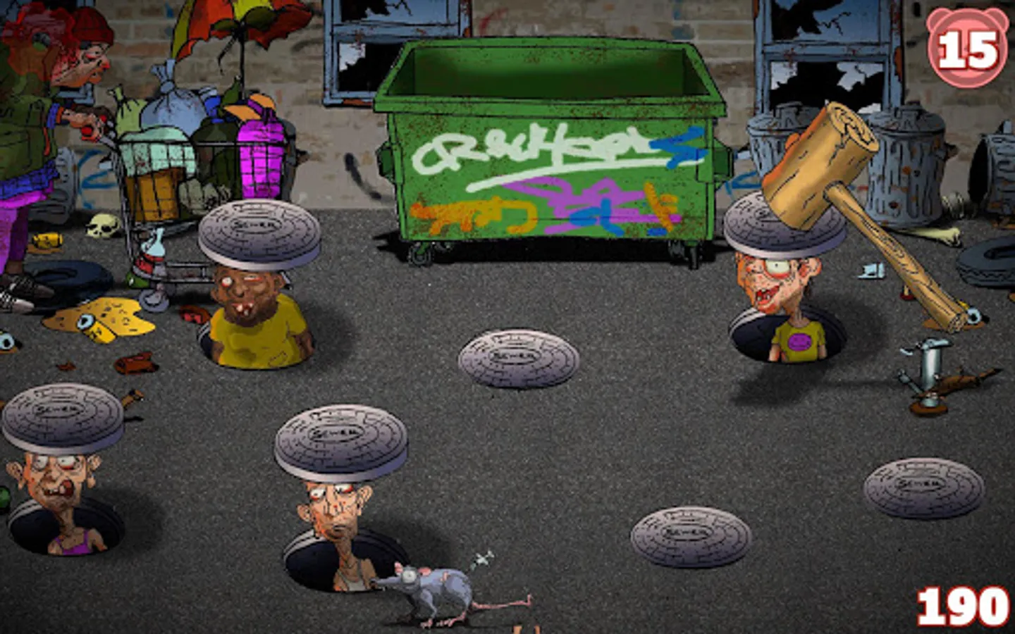 Game play: Whack as many crackheads and other critters as you can. The more you hit, the more extra time you get. This new version contains 12 different levels with 36 crack smacking challenges to get through. The game does contain ads, but for a small investment you can remove the ads and unlock all the levels.