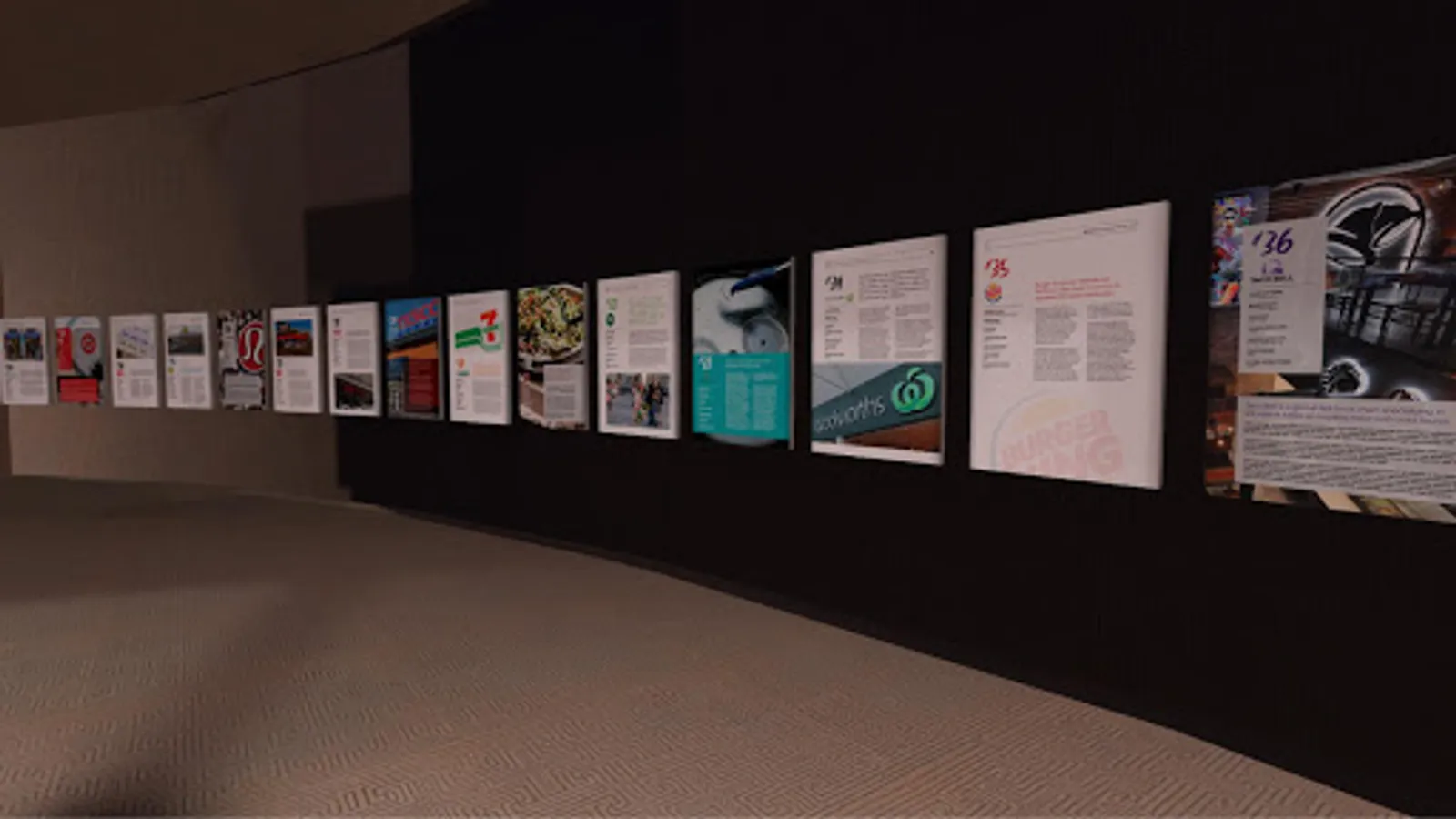 Tap your finger on the floor in the virtual space you wish to move to, and you will automatically travel in that direction. Tap and drag to look around each room as you move or stand in a room. Once you have explored the content of a room go to the top left-hand menu button and see the range of conference locations available to explore. Tap on the black arrow to go to that location. The menu is accessible at any time.
