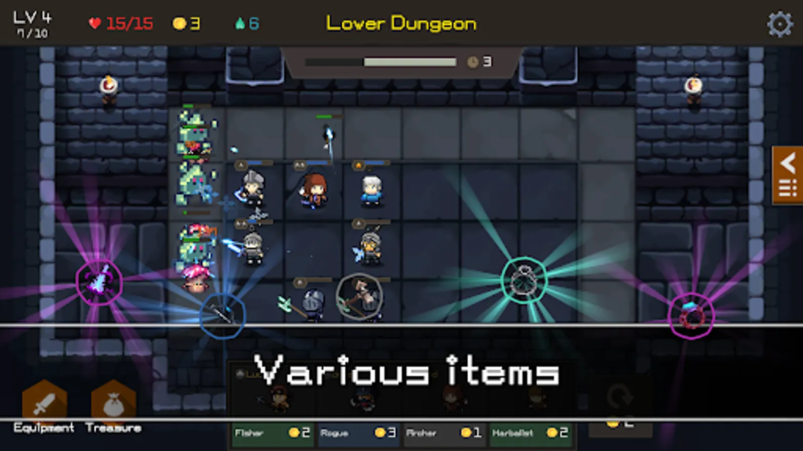 Treasures acquired by exploring dungeons can also create powerful synergies with heroes, traits, and equipment items.