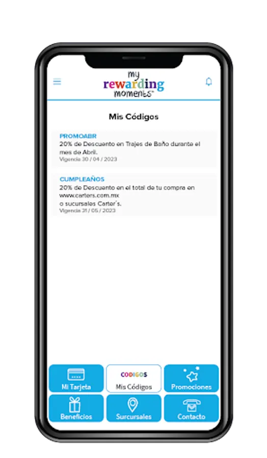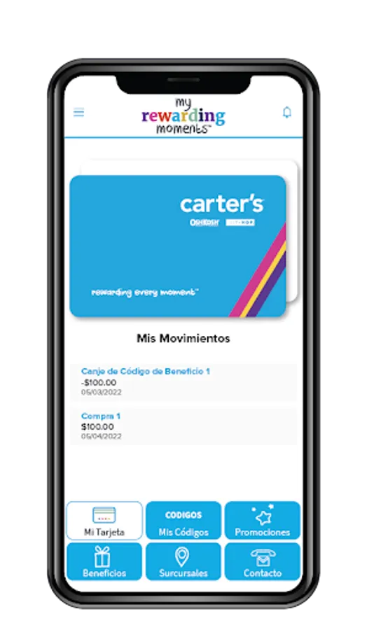 Join My Rewarding Moments!, register your data and you can start enjoying the Benefits available to you, check your Benefit Codes, check your Movements, receive Special Promotions, locate Carter's branches, among others.