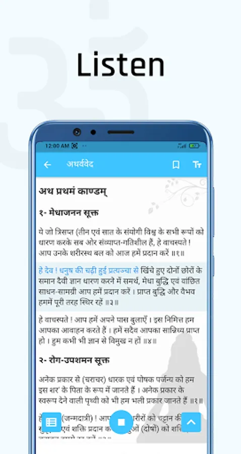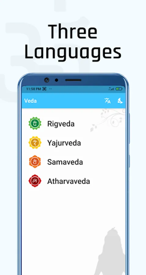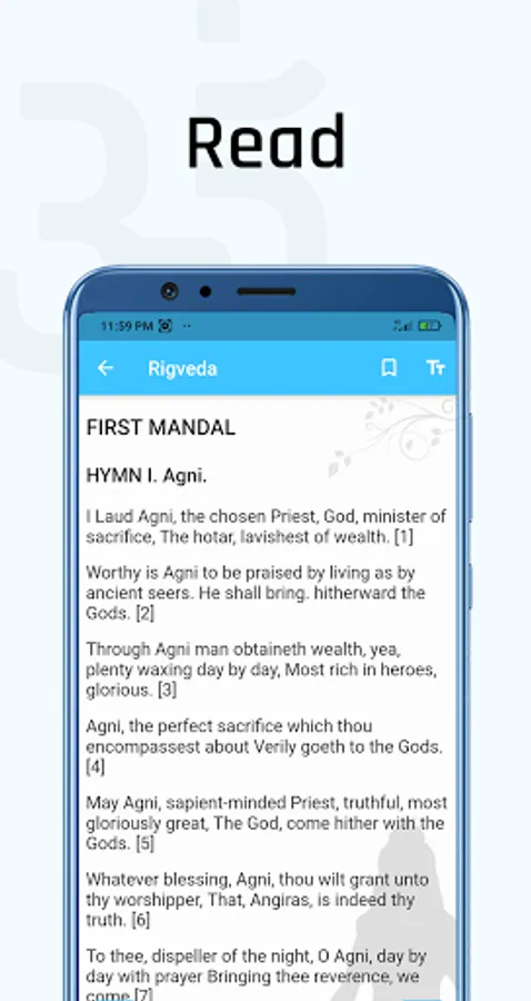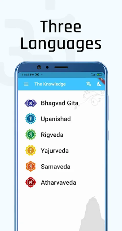 One place to read all Four Vedas: the Rigveda, the Yajurveda, the Samaveda, and the Atharvaveda, 60+ Upanishad & Bhagvad Gita in three different languages, English, Hindi, and Sanskrit.