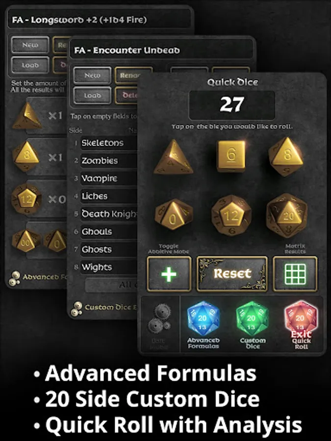 DMDJ is equipped with a powerful and advanced dice system that can be completely customized to your needs. Even the most complicated dice throw is one touch away while you can trust our randomly generated results, just like the actual dice, or make your custom weighted die to favor a situation.