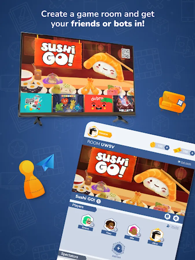 Do you have a Smart TV? Mirror your phone and get your board on the screen (just like Jackbox Party)! Have access to your wins, points, and board game stats!