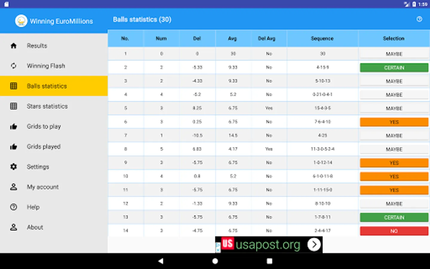 You can also look over the different statistics for the balls and the Lucky Stars, change the analysis periods and determine the balls that are more likely to come up according to your own algorithm.