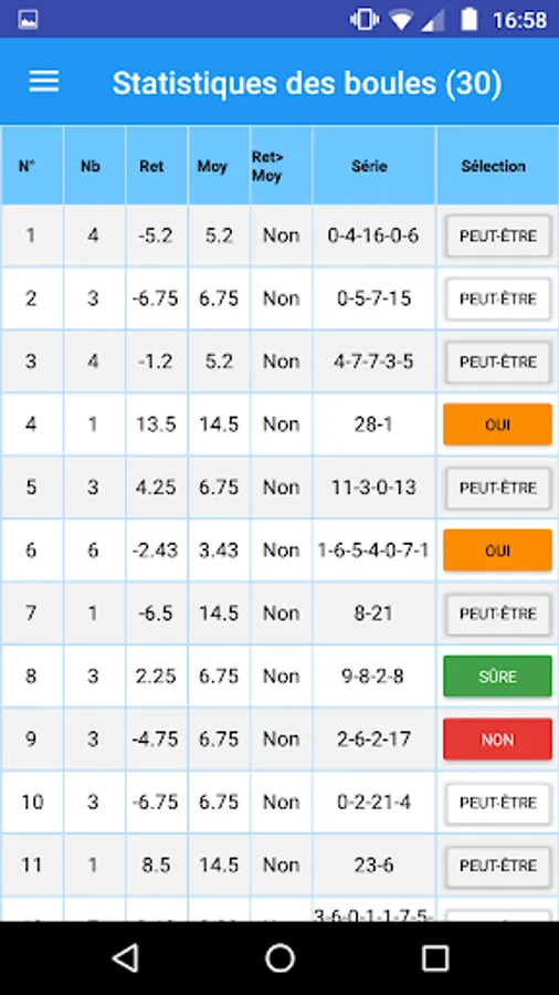 You can also browse through the different statistics balls and lucky numbers, change the periods of analysis and determine the balls that have the greatest chance of getting to your own algorithm.