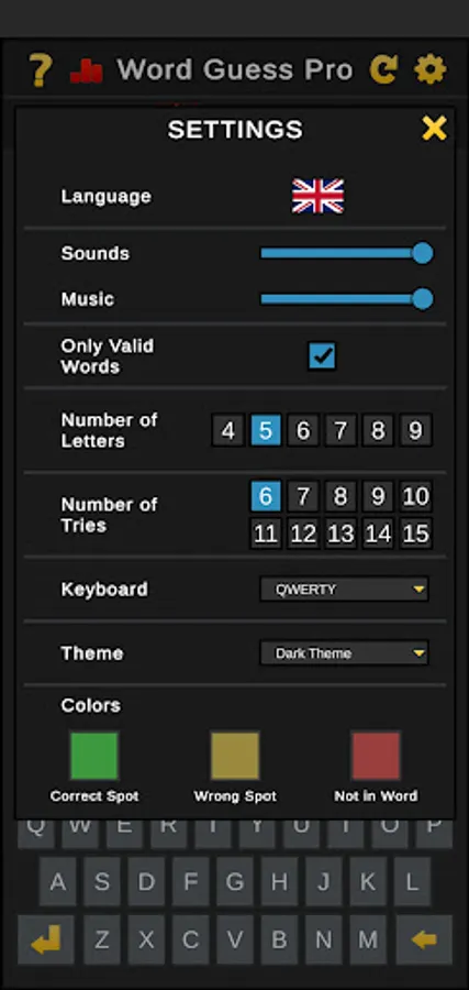 Word Guess Pro is a multilingual word game where you are given a hidden word to guess in 6 or more tries depending on the settings you applied.