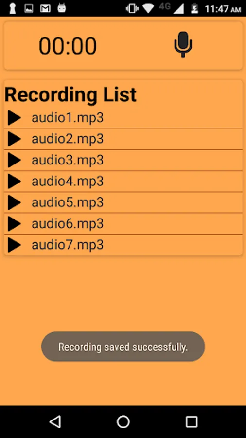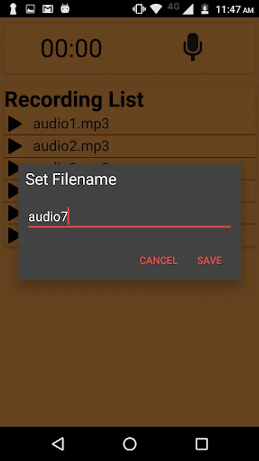 It is a free app without any adds. It is a simple and basic app for recording your voice, speech, lecturers anything that you want to save for future purpose. It will provide you some options like you can record your audio and can listen anytime. It does not have any time limitation so you can save unlimited audios (limited to your Phone Memory). It is a very good app to save audios. Soon, we will get update of this app with more new options and functions. Till now, It can only record .mp3 extension files.