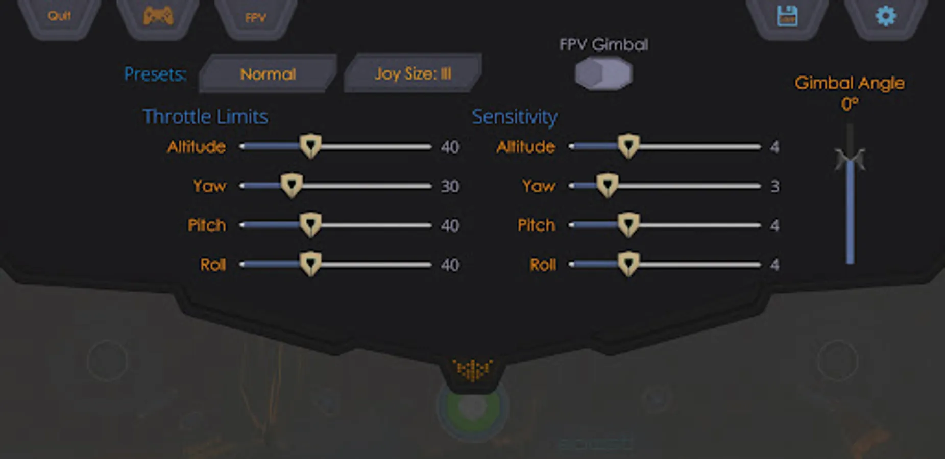 Demo includes ultra smooth exponential screen joysticks just like your cinematic drones or acro FPV drones. Demo also supports bluetooth controllers like xbox, ps4, razer and more.