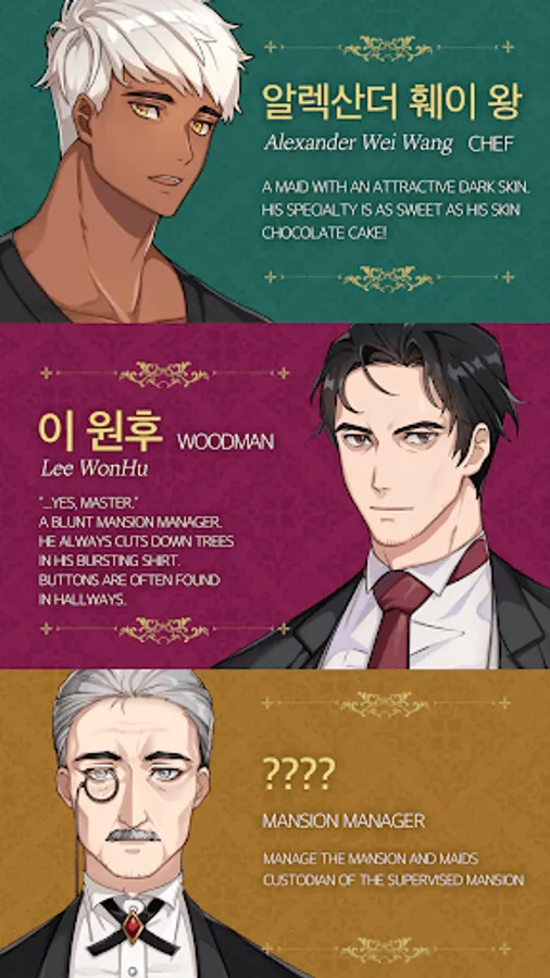 A mansion manager with little words and a blunt expression. He wears a shirt that always bursts and is cutting firewood in the back of the mansion.