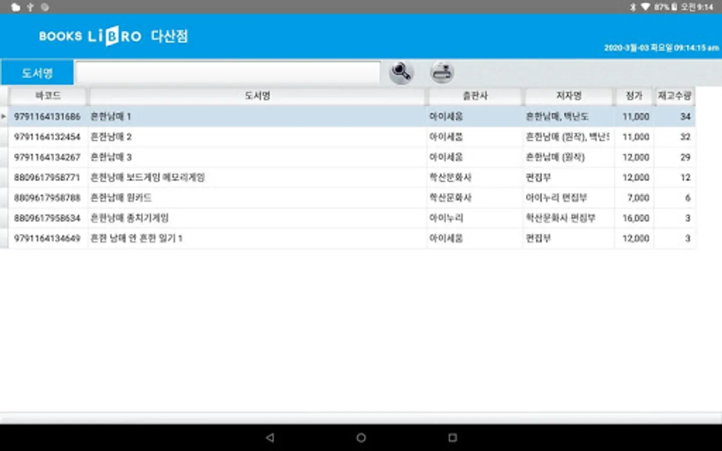 북스리브로 재고조회(직원용) Screenshots